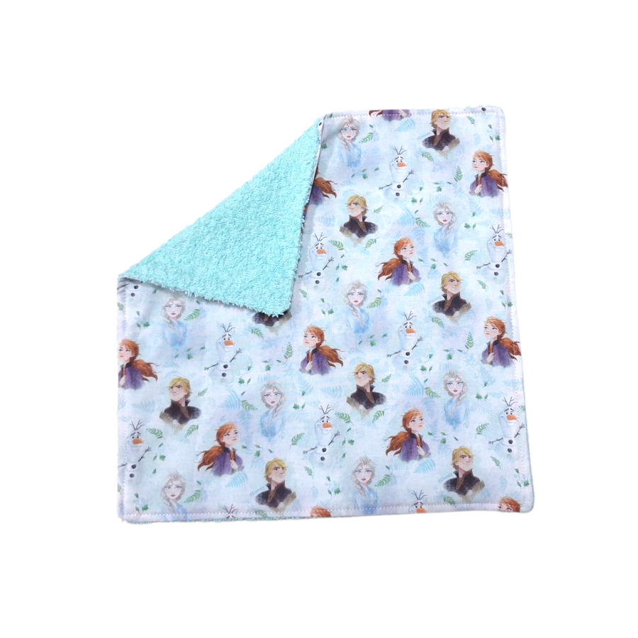 Παιδικό σουπλά ή βρεφικό πανάκι αγκαλιάς διπλής όψης. Η μία όψη είναι από πετσέτα και η άλλη όψη από βαμβακερό ύφασμα.