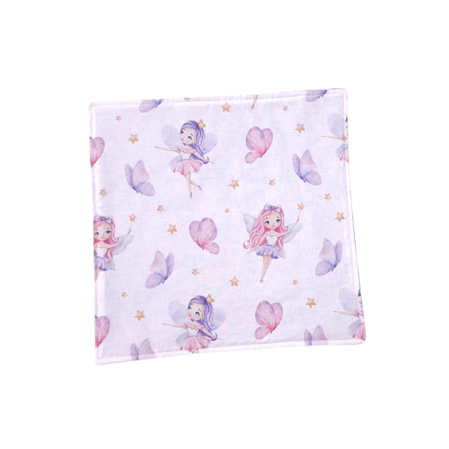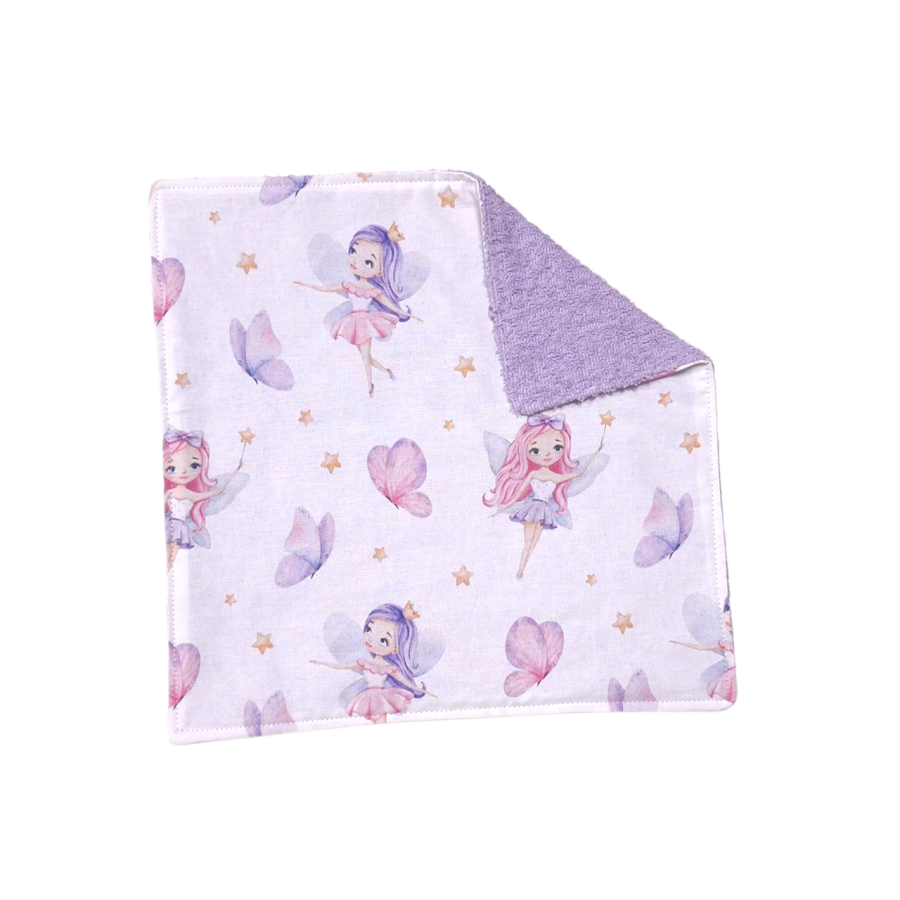 Παιδικό σουπλά ή βρεφικό πανάκι αγκαλιάς διπλής όψης. Η μία όψη είναι από πετσέτα και η άλλη όψη από βαμβακερό ύφασμα.