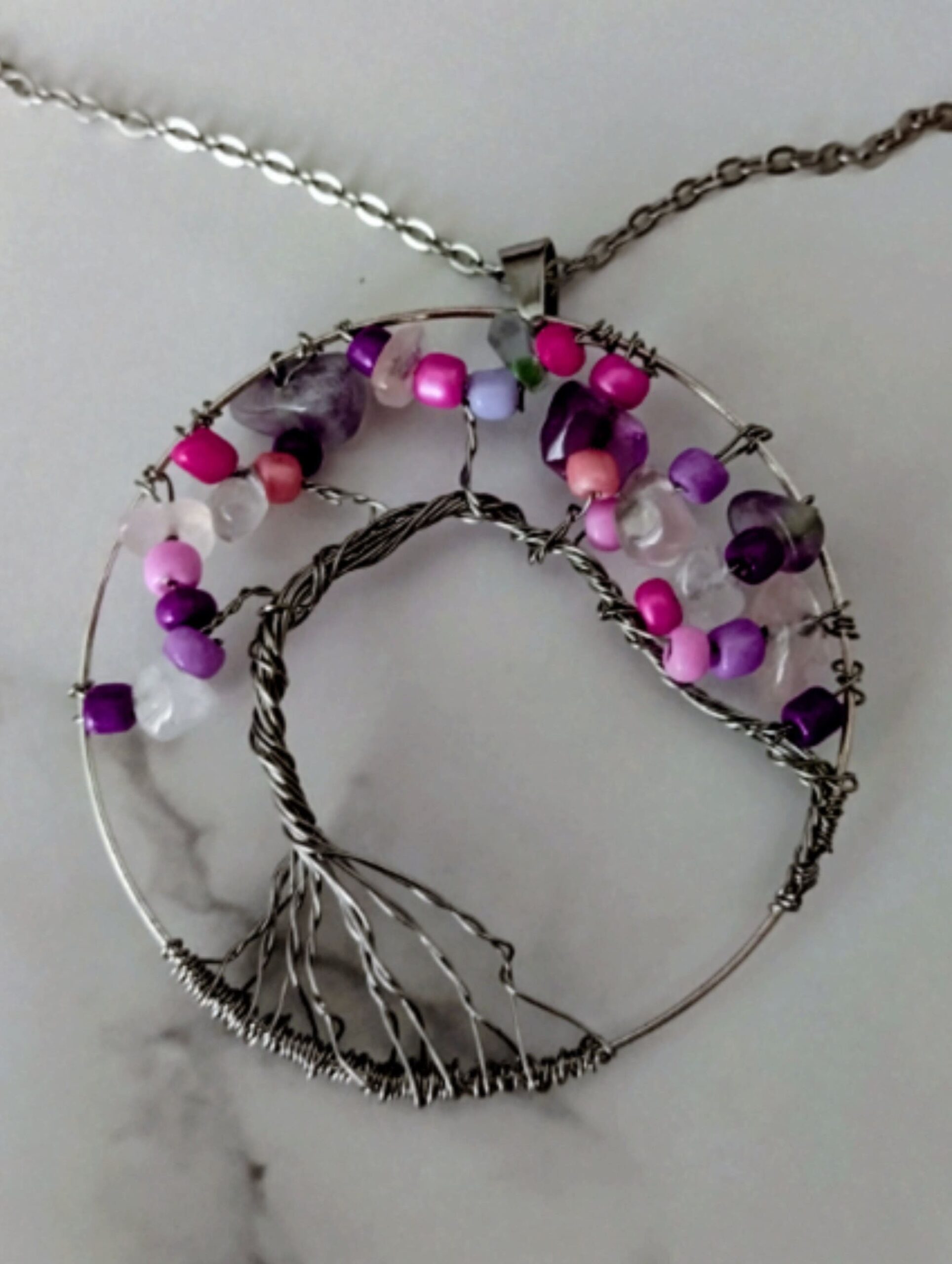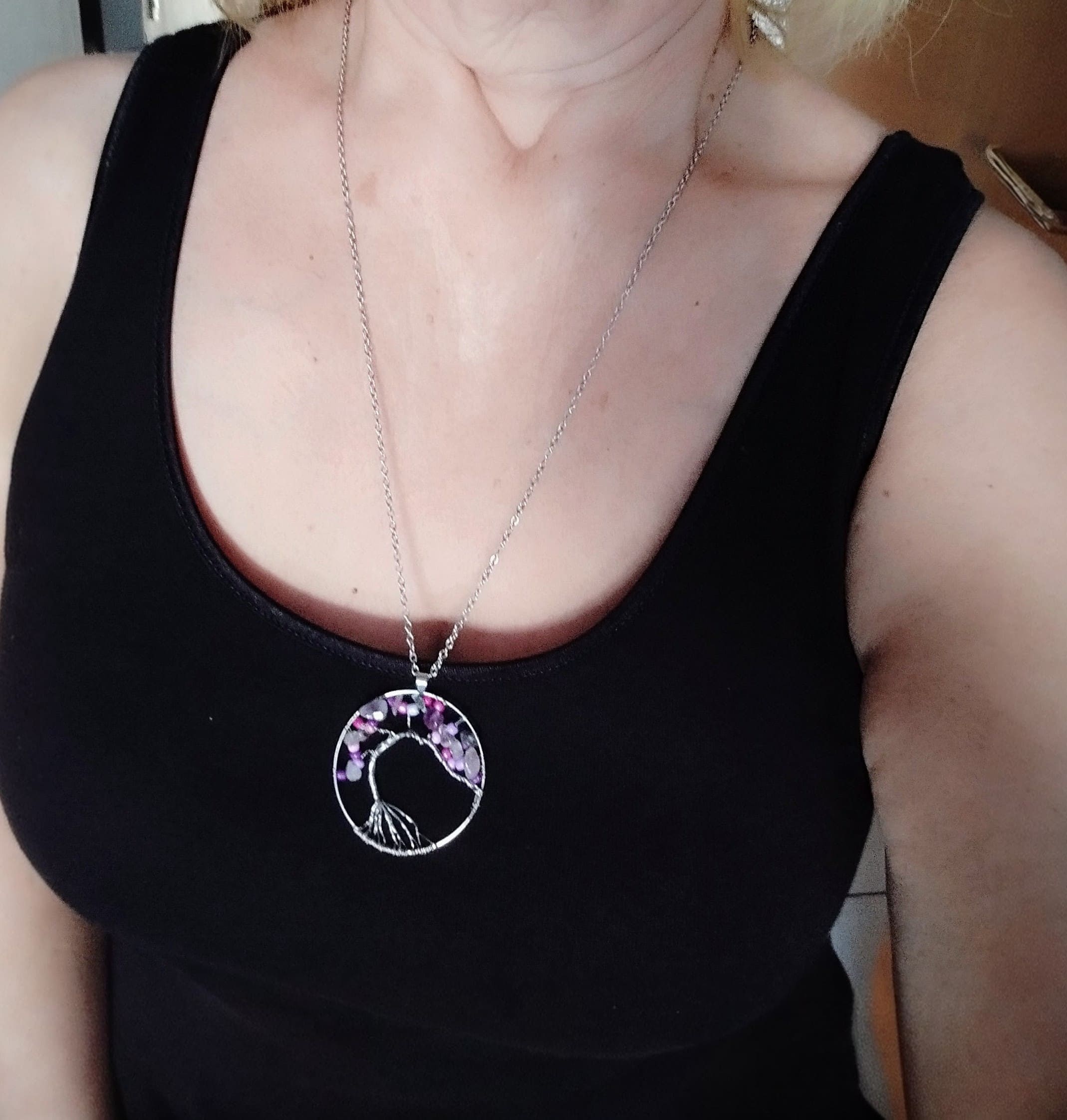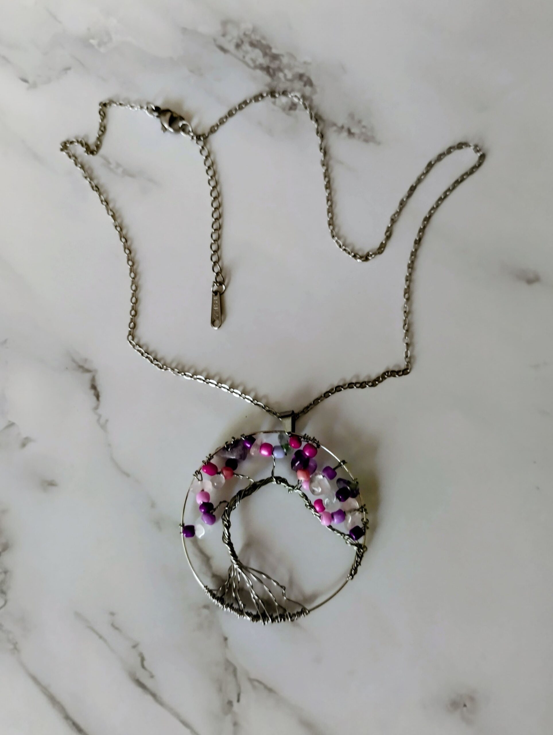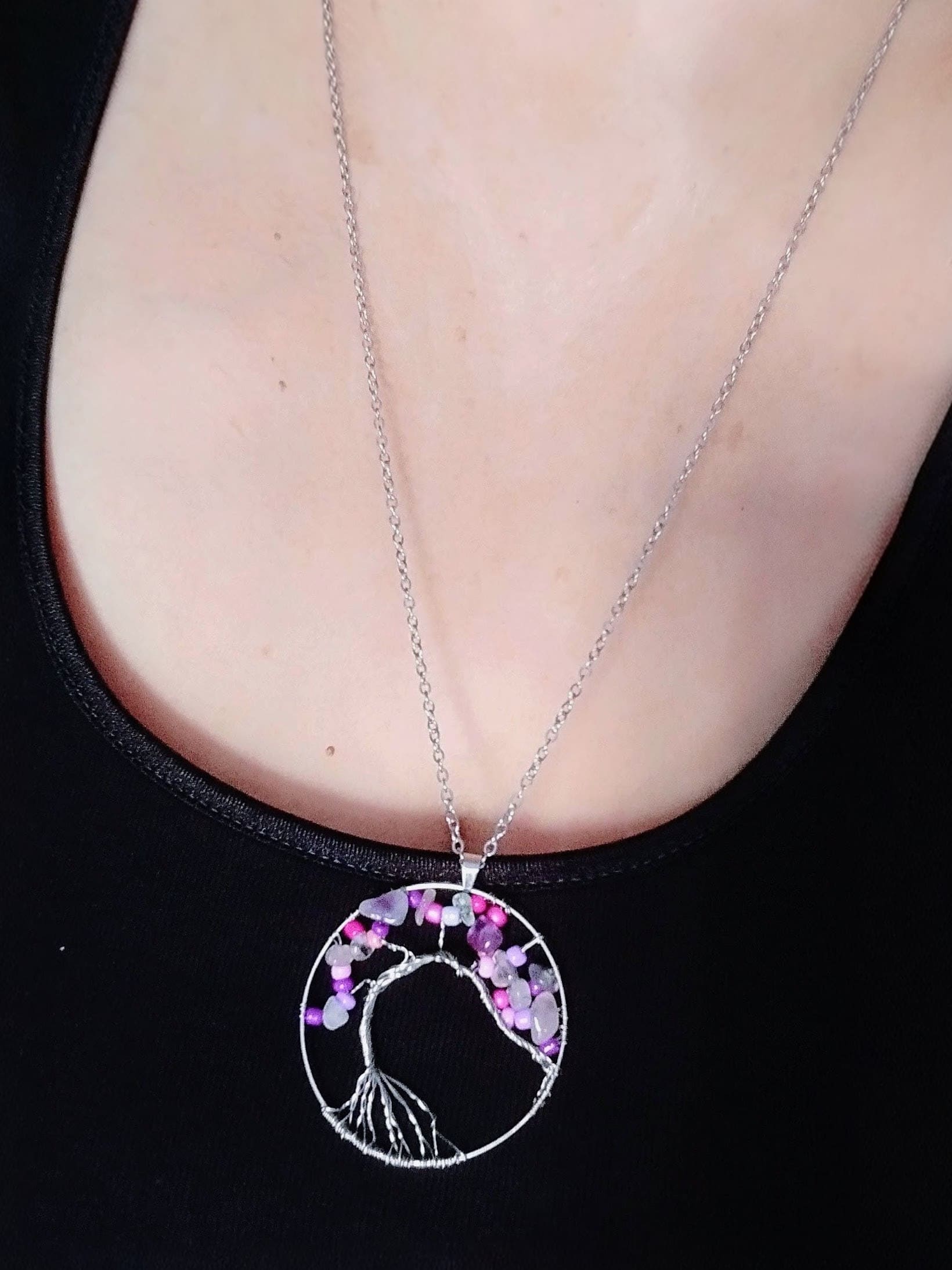 Χειροποίητο ατσάλινο κολιέ Δέντρο της Ζωής με κρύσταλλα
