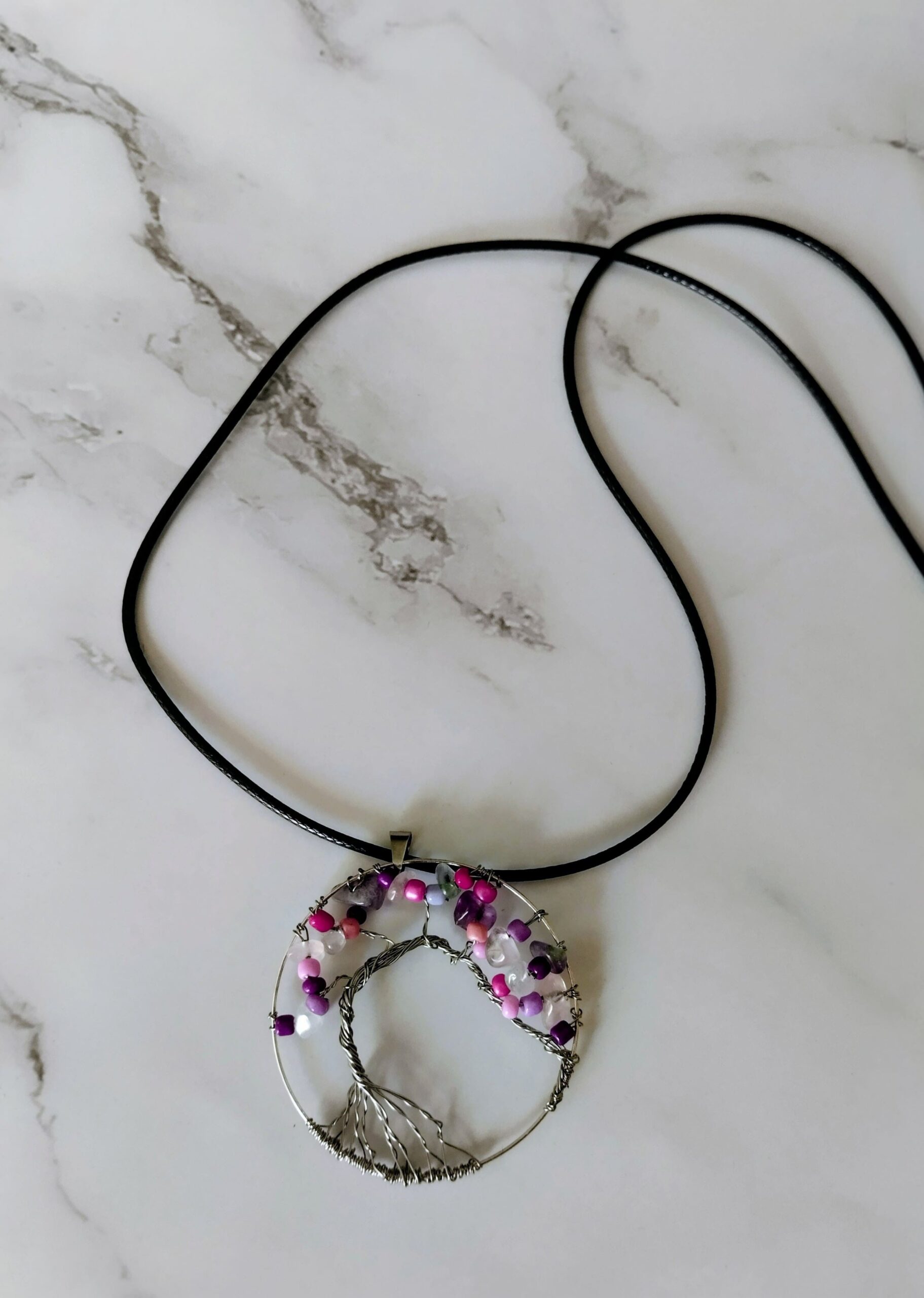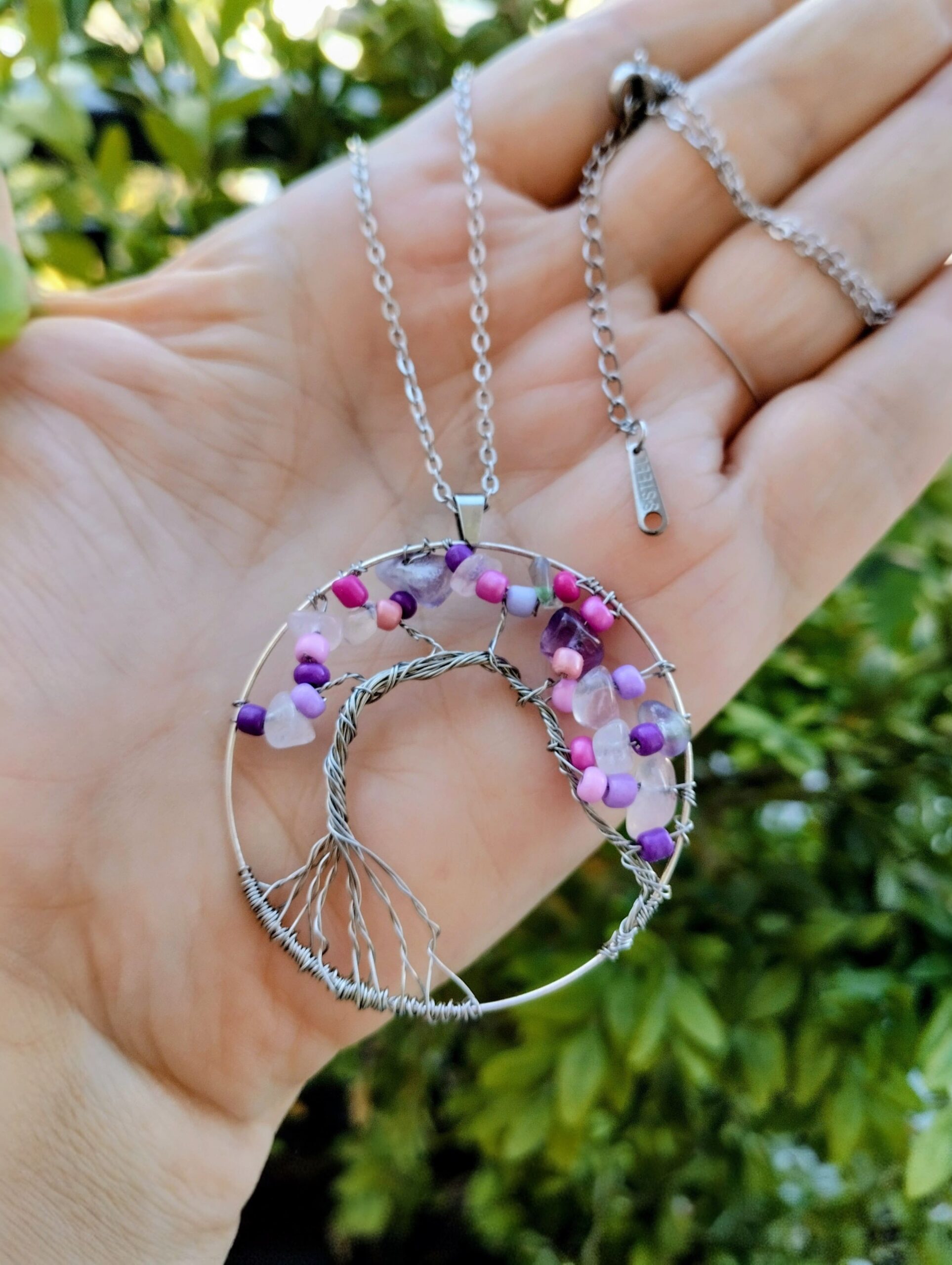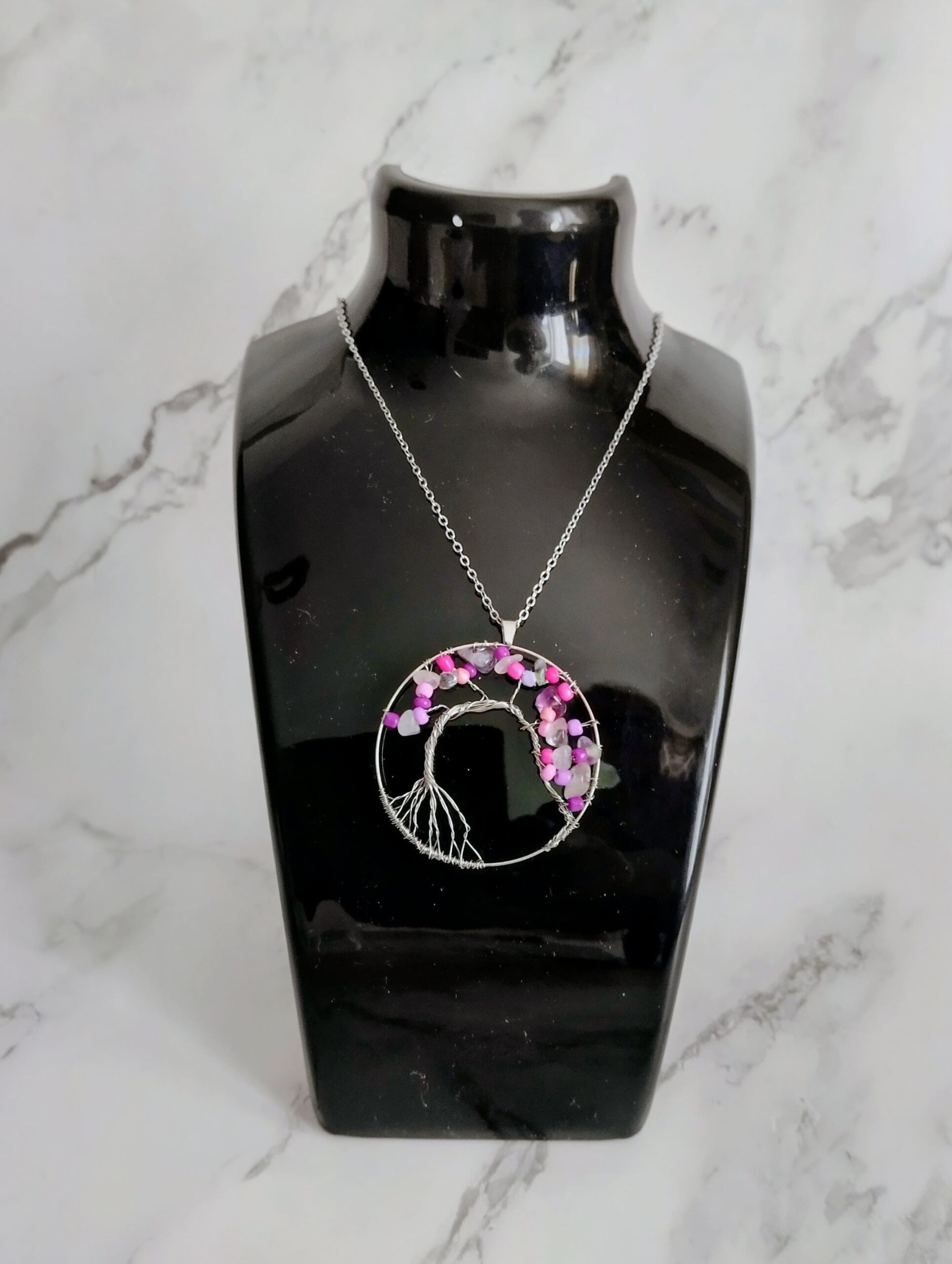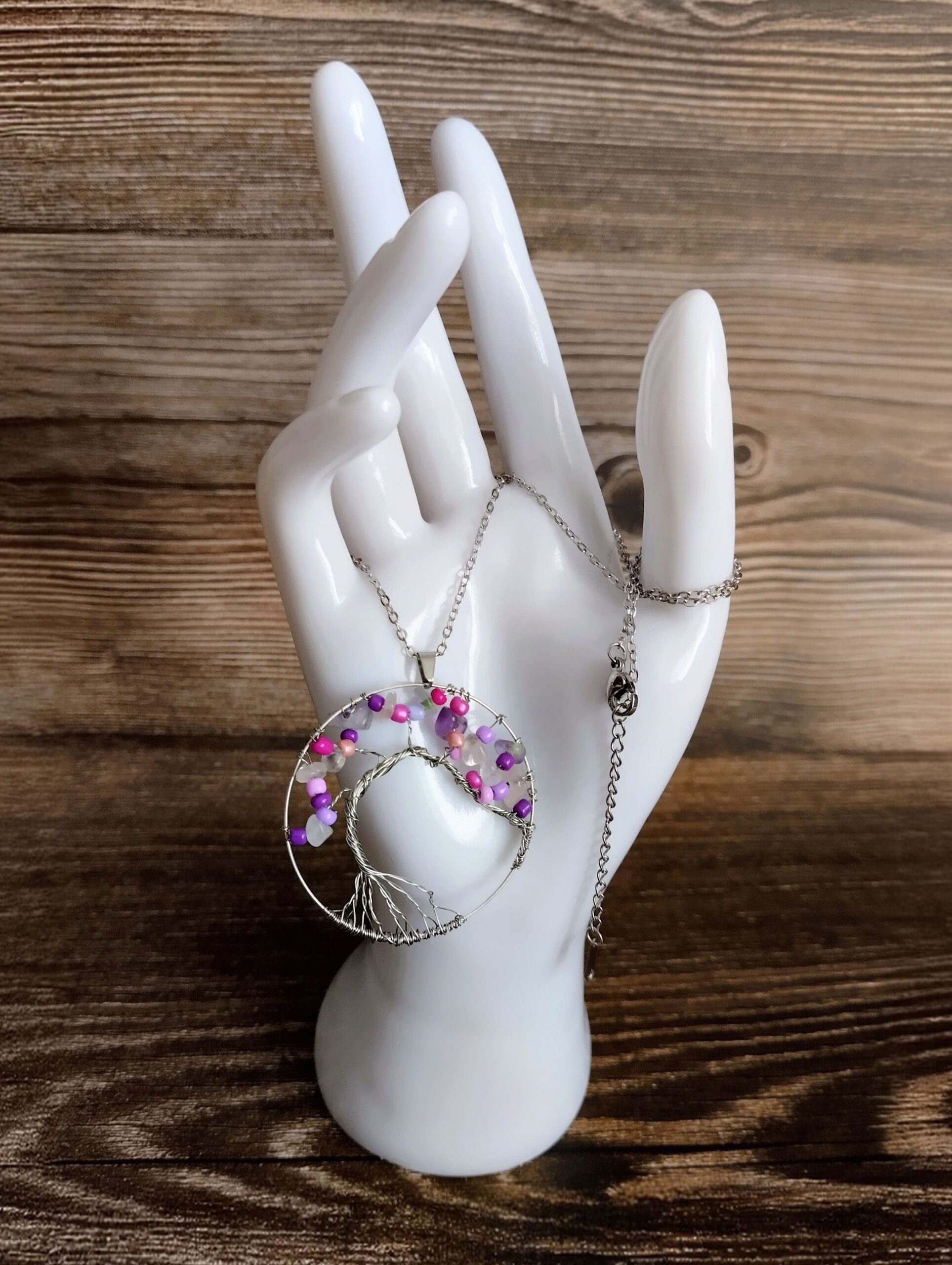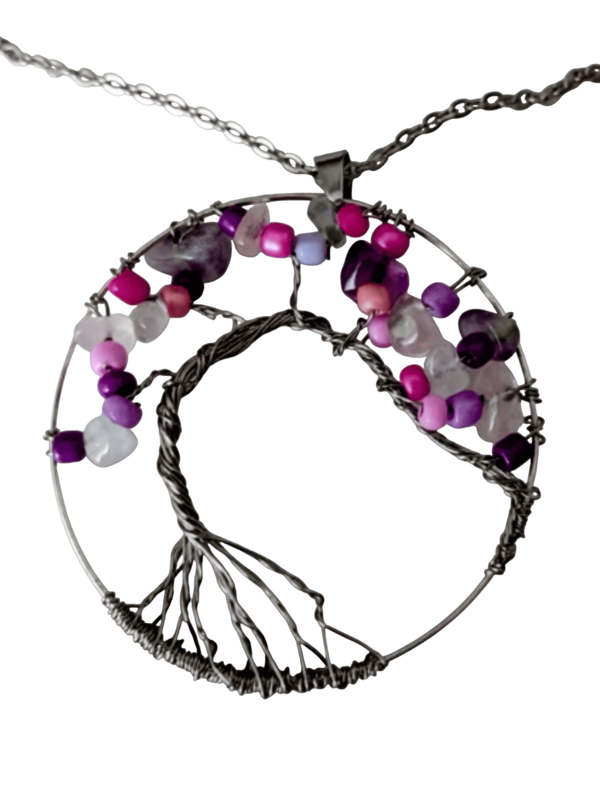 Χειροποίητο ατσάλινο κολιέ Δέντρο της Ζωής με κρύσταλλα