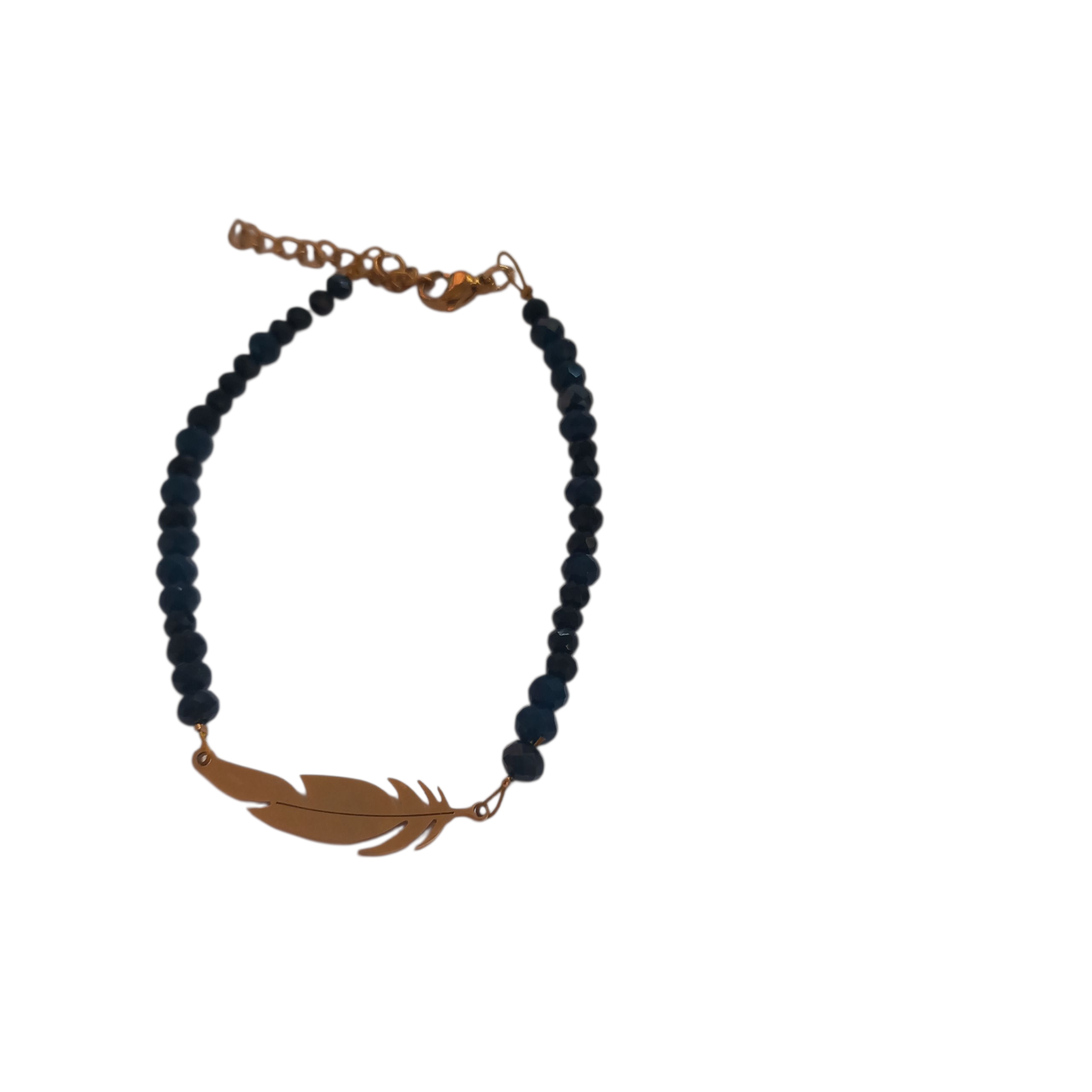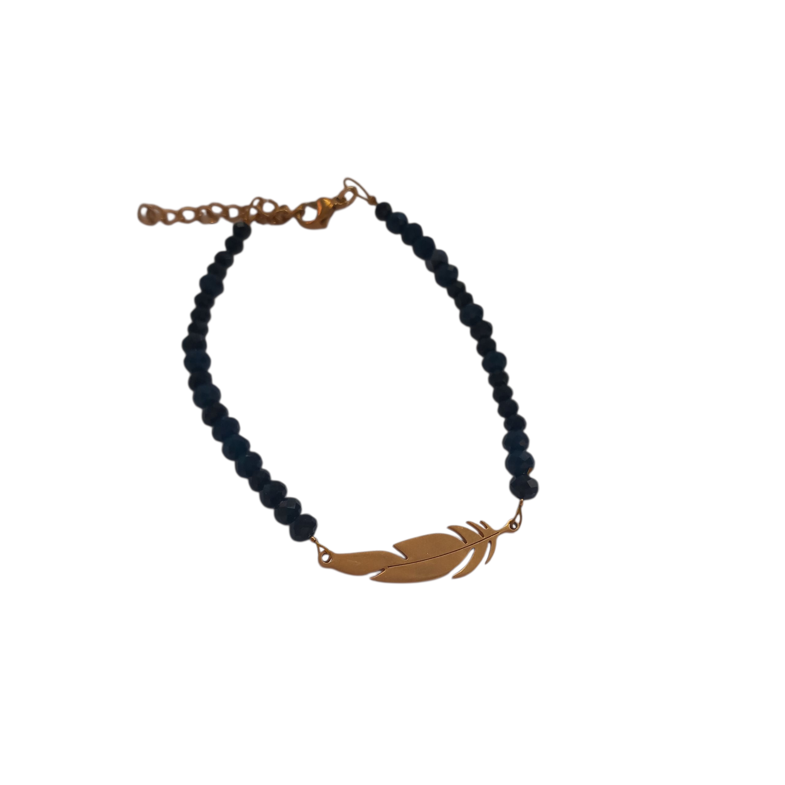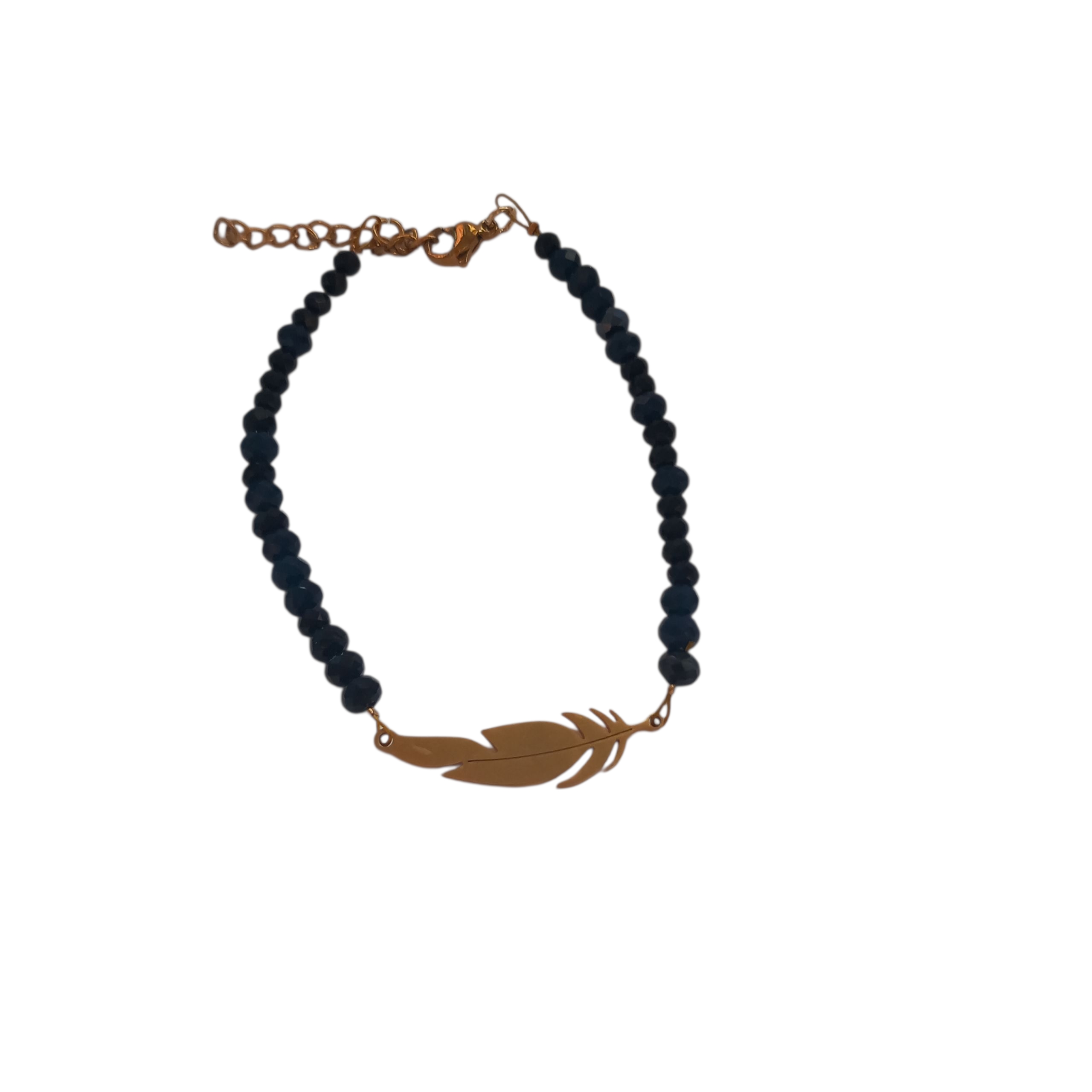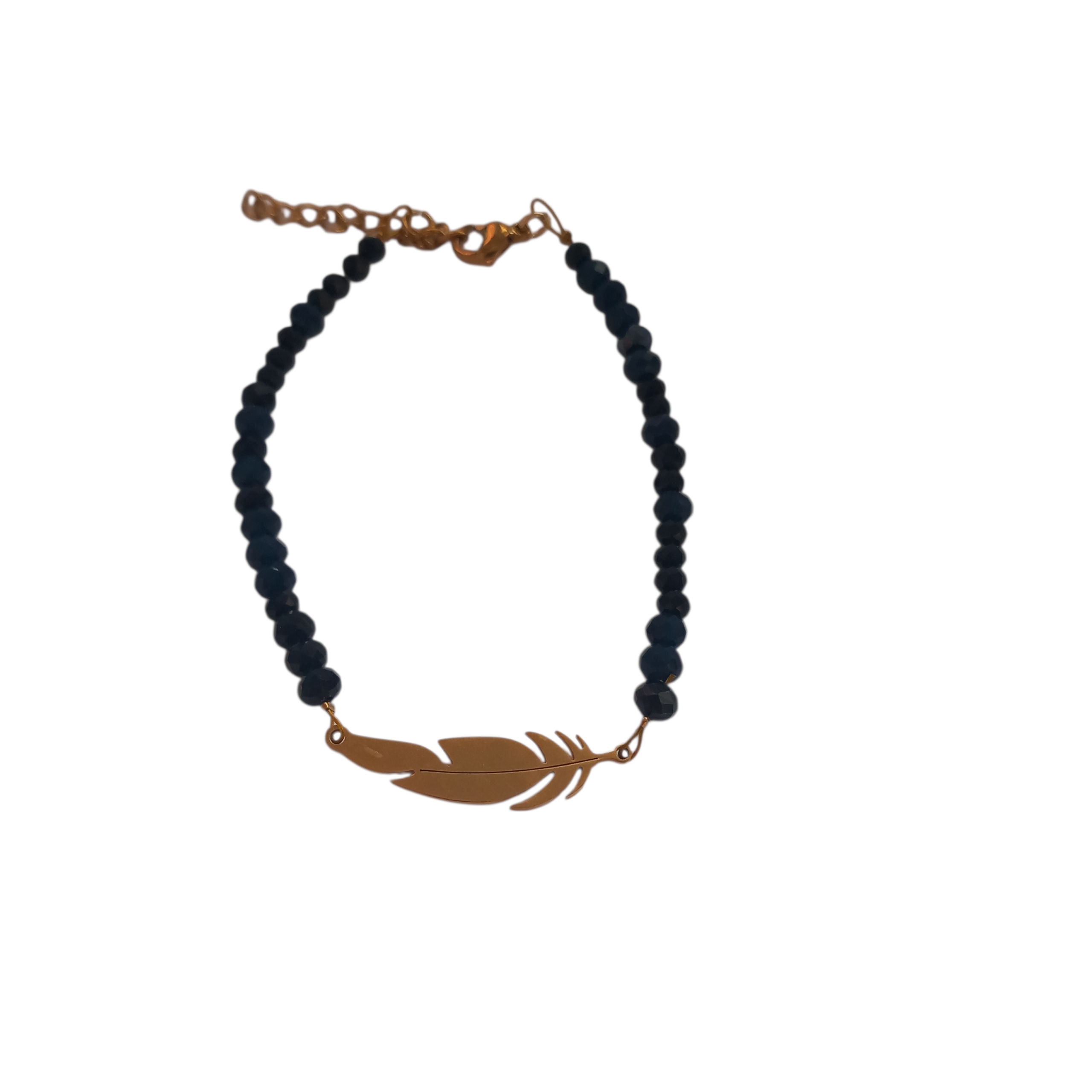 Χειροποίητο βραχιόλι φύλλο από ατσάλι και χάντρες. Κουμπώνει με ατσάλινο καβουράκι και ατσάλινη αλυσίδα αυξομείωσης.