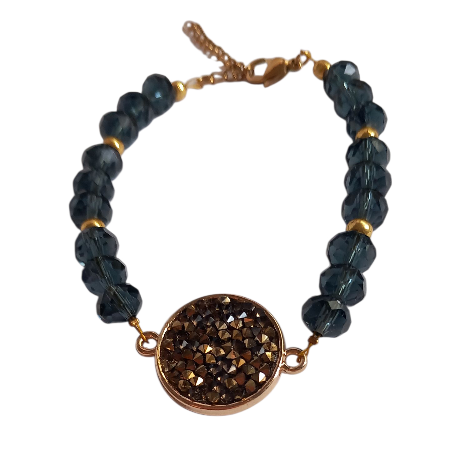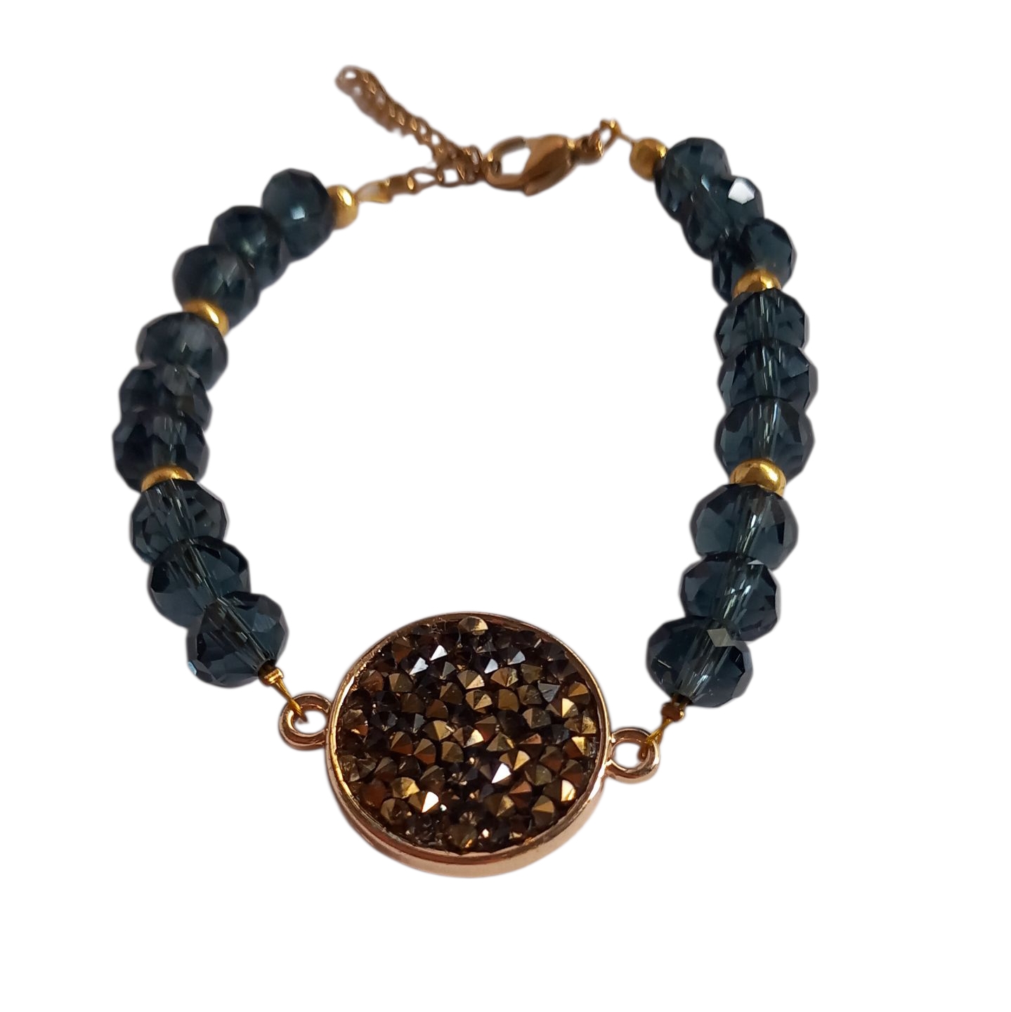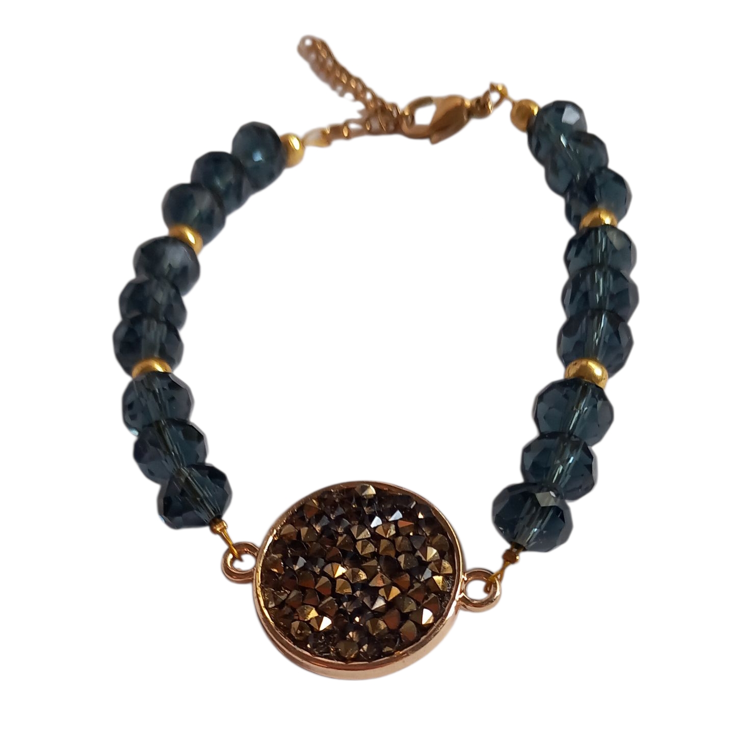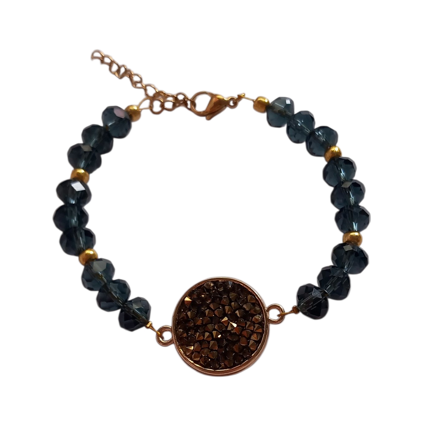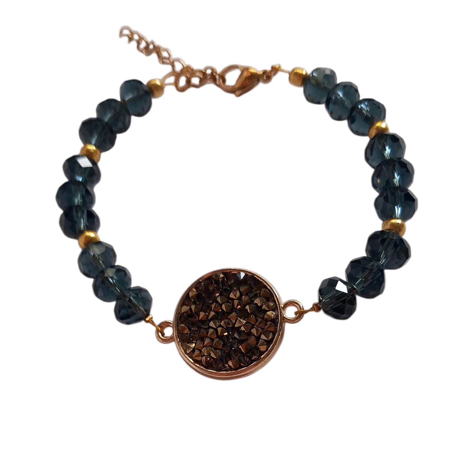 Χειροποίητο βραχιόλι στρογγυλό μοτίφ από ορείχαλκο με πετρούλες.Κουμπώνει με ατσάλινο καβουράκι και ατσάλινη αλυσίδα αυξομείωσης.