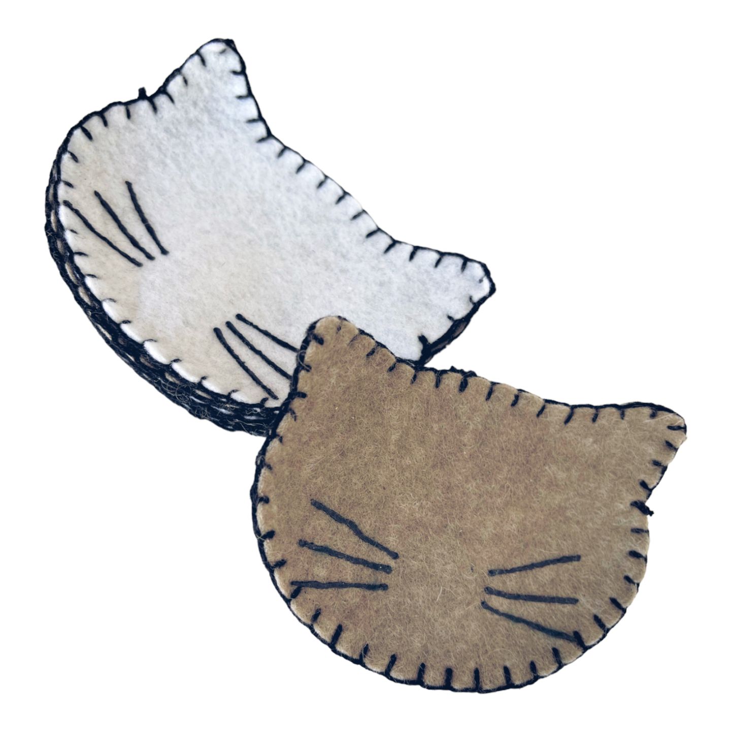 Φέρτε λίγη… γατίσια γοητεία στο τραπέζι σας με αυτά τα χειροποίητα σουβέρ σε σχήμα γατούλας! 🐱 Κάθε κομμάτι είναι φτιαγμένο από μαλακό felt, ραμμένο στο χέρι με προσοχή και φροντίδα. Ιδανικά για καφέδες, τσάγια και δροσερά ποτά, προστατεύουν τις επιφάνειες σας με παιχνιδιάρικο στιλ. Ένα σετ των 6 τεμαχίων που θα αγαπήσουν όλοι οι cat lovers!