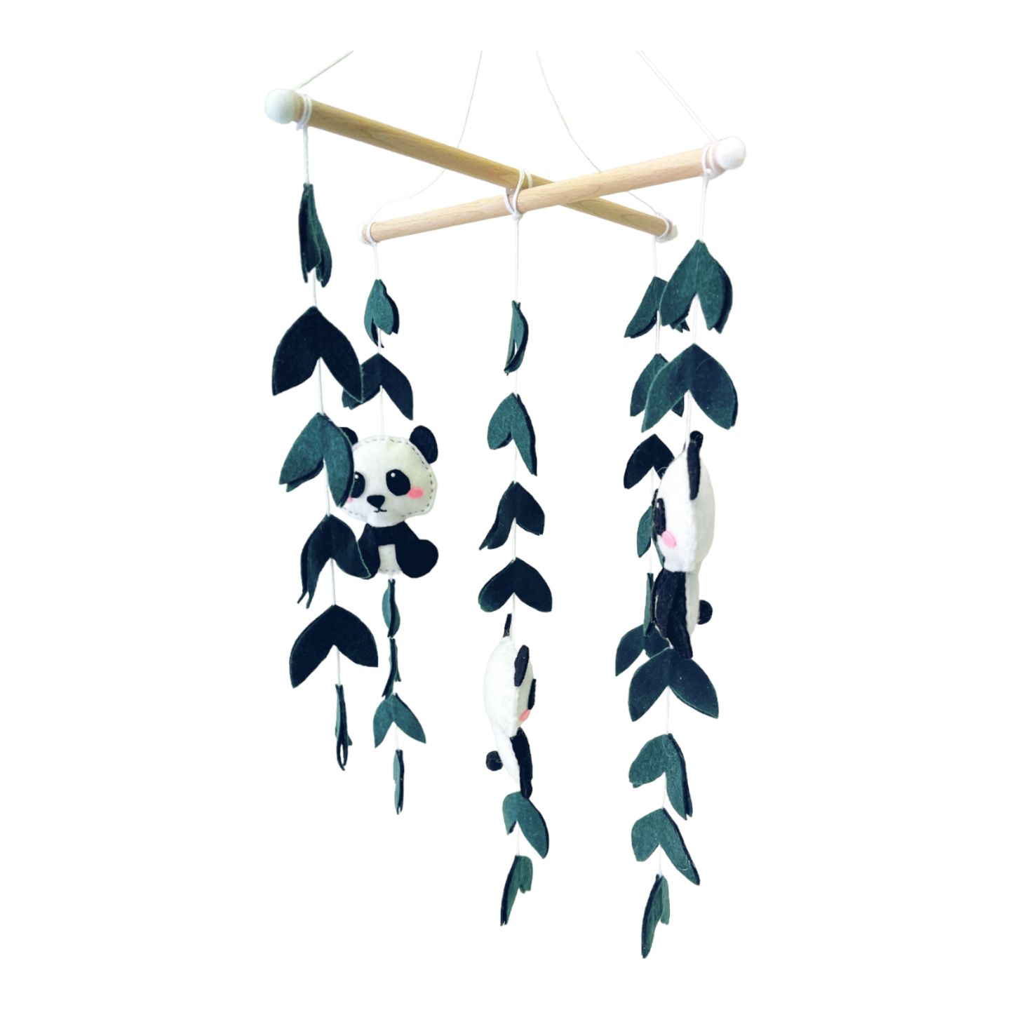 Ανάμεσα σε φυλλαράκια μπαμπού κρύβονται χαριτωμένα πάντα που κρέμονται παιχνιδιάρικα και χαρίζουν γαλήνη. Αυτό το mobile προσφέρει στο μωράκι σας μια αίσθηση ασφάλειας και ηρεμίας, καθώς παρακολουθεί τις απαλά κινούμενες φιγούρες. Κάθε στοιχείο είναι φτιαγμένο στο χέρι από κομμάτια υφάσματος που ξαναβρίσκουν ζωή μέσα από τη δημιουργία, κάνοντας το κάθε σχέδιο μοναδικό και γεμάτο αγάπη.