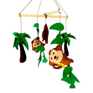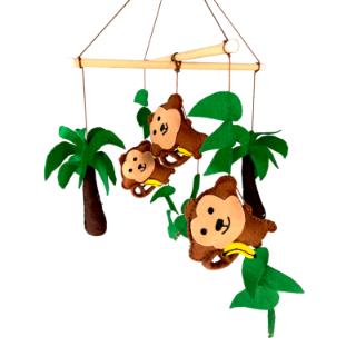 Μικρές μαϊμουδίτσες κρέμονται από φοίνικες, παίζοντας χαρούμενα με τα φύλλα και τα φρούτα. Αυτό το mobile γεμίζει το δωμάτιο ζωντάνια και ενέργεια, κάνοντας το μωρό να χαμογελά καθώς παρακολουθεί τις κινήσεις τους. Φτιαγμένο με στοργή στο χέρι, χρησιμοποιεί υφάσματα που επαναχρησιμοποιούνται με δημιουργικότητα, χαρίζοντας σε κάθε κομμάτι χαρακτήρα και μοναδικότητα.