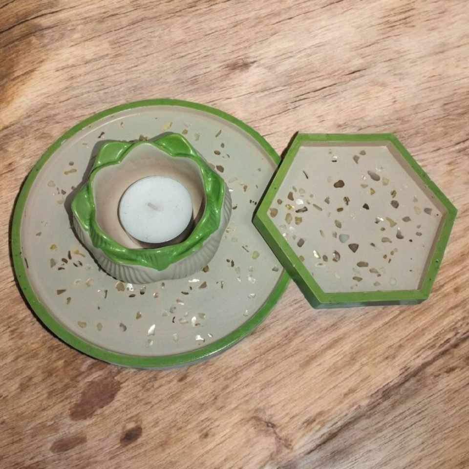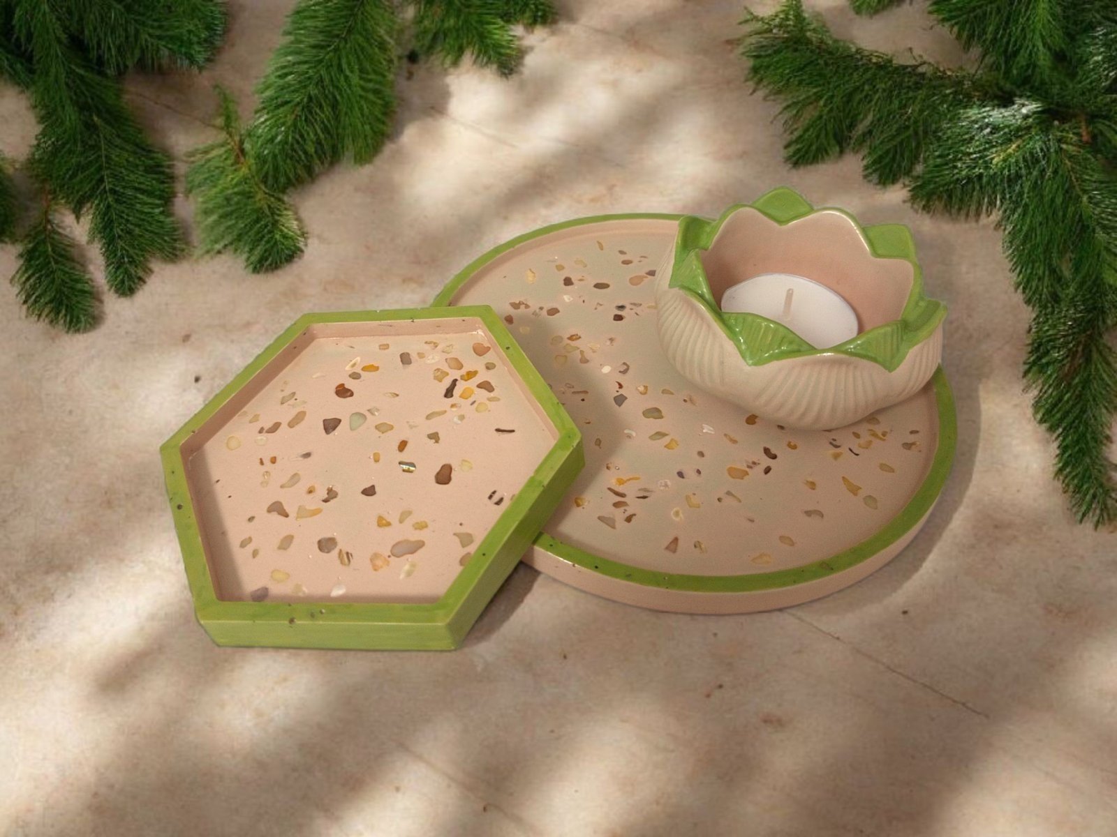 Σετ δίσκος με βαζάκι για ρεσώ και πολυγωνικό πιατάκι σε στυλ μωσαϊκό