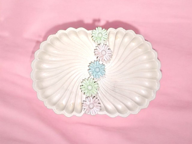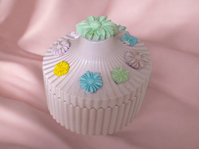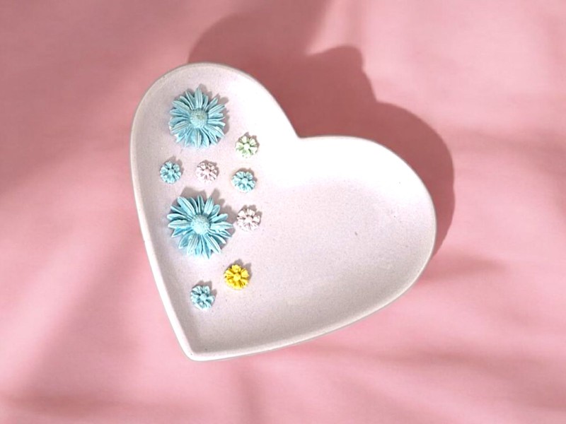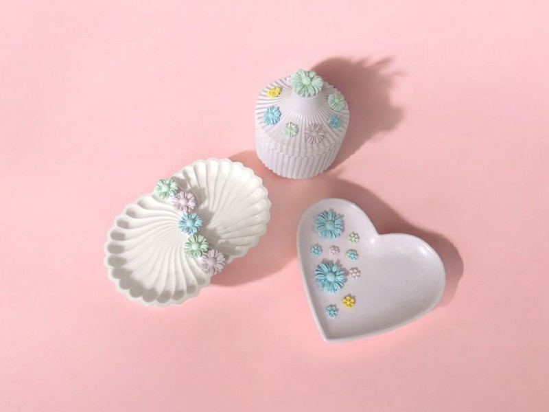 Ένα σετ πορσελάνης τριών τεμαχίων αποτελούμενο από πιατάκι καρδούλα, δισκάκι για κοσμήματα και βαζάκι με καπάκι!Και τα τρία τεμάχια είναι διακοσμημένα με πολύχρωμα λουλούδια που του δίνουν ένα ρομαντικό τόνο!