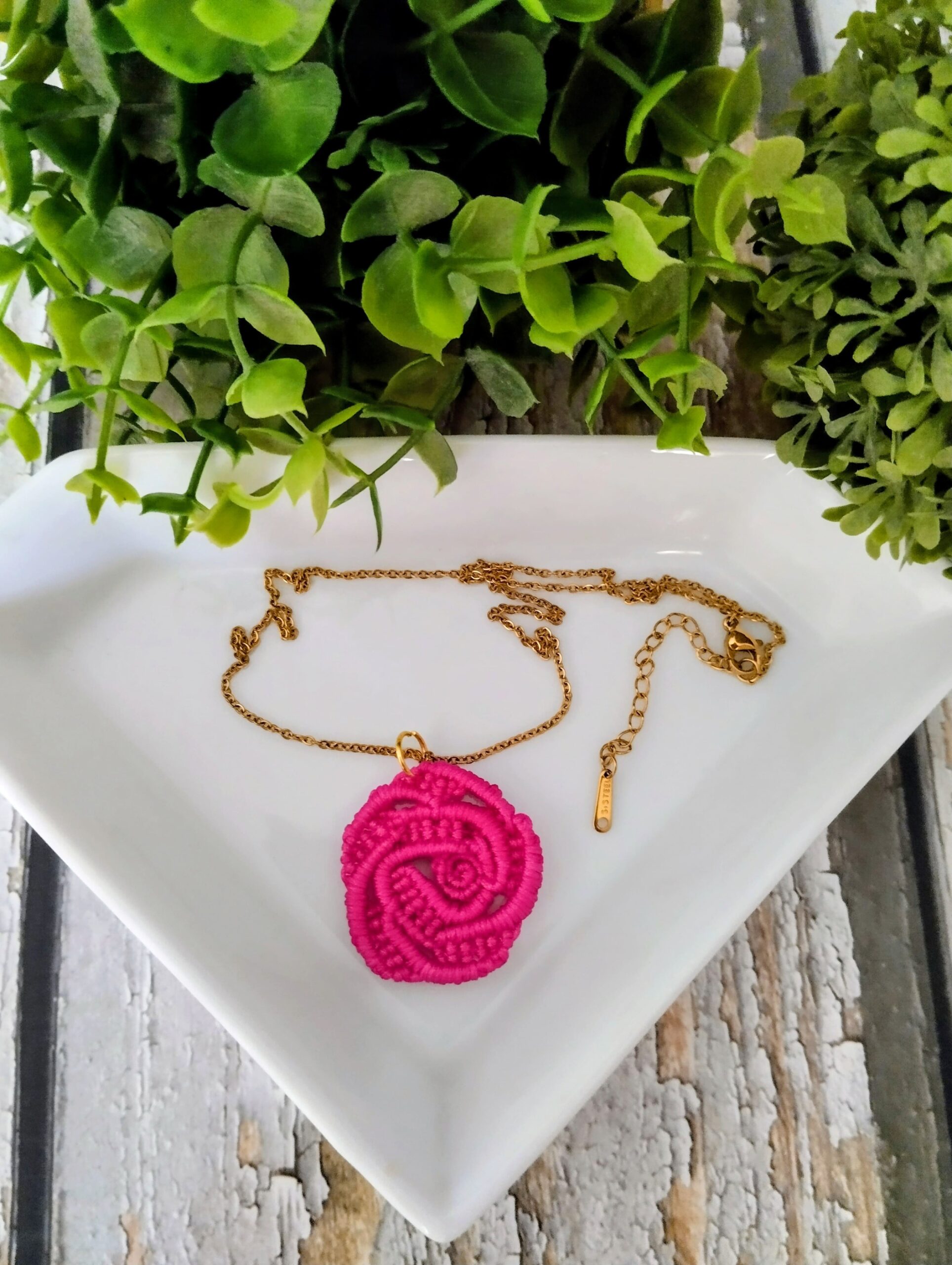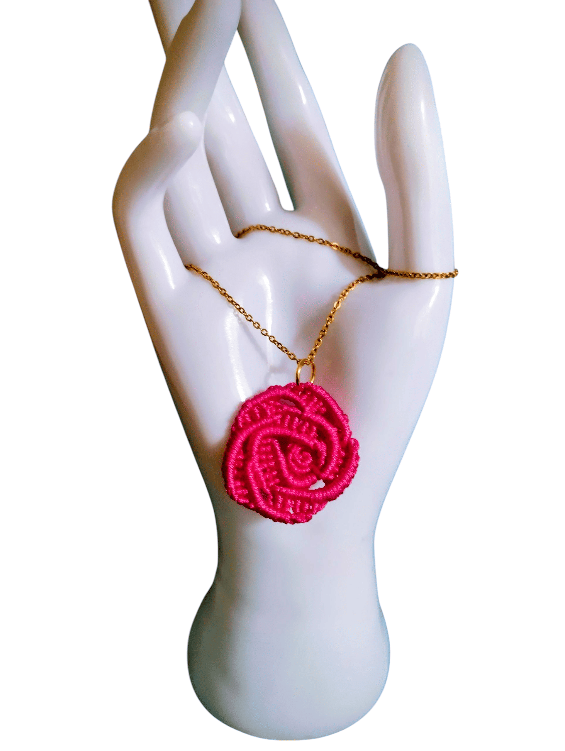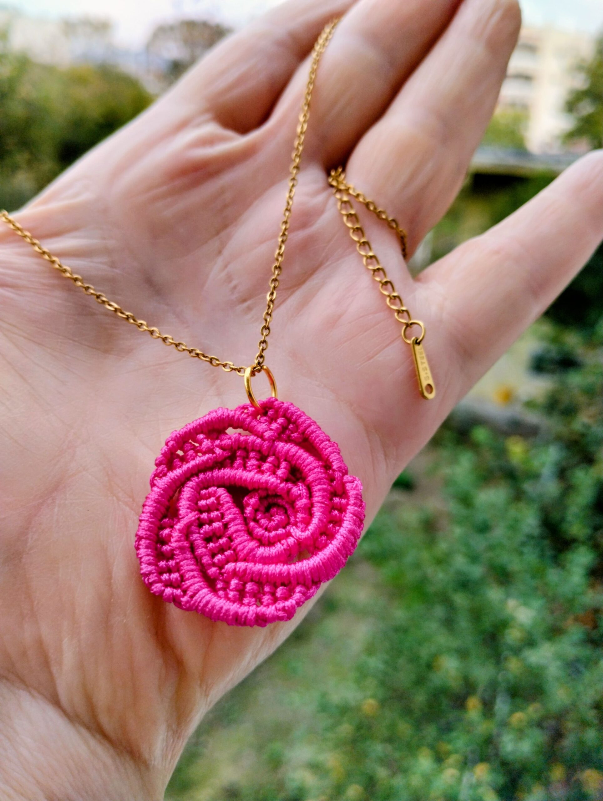 Χειροποίητο κολιέ boho τριαντάφυλλο micro macrame