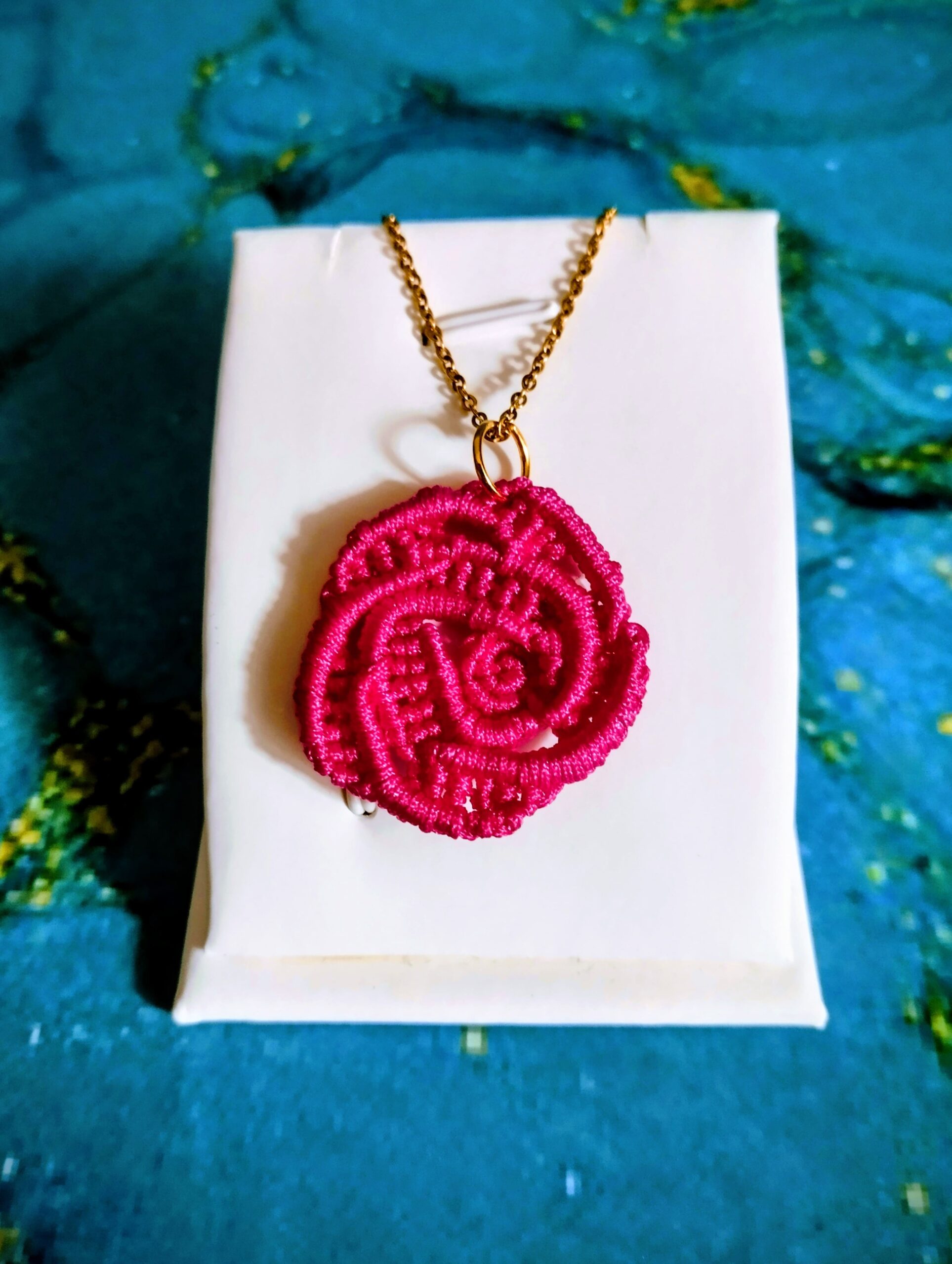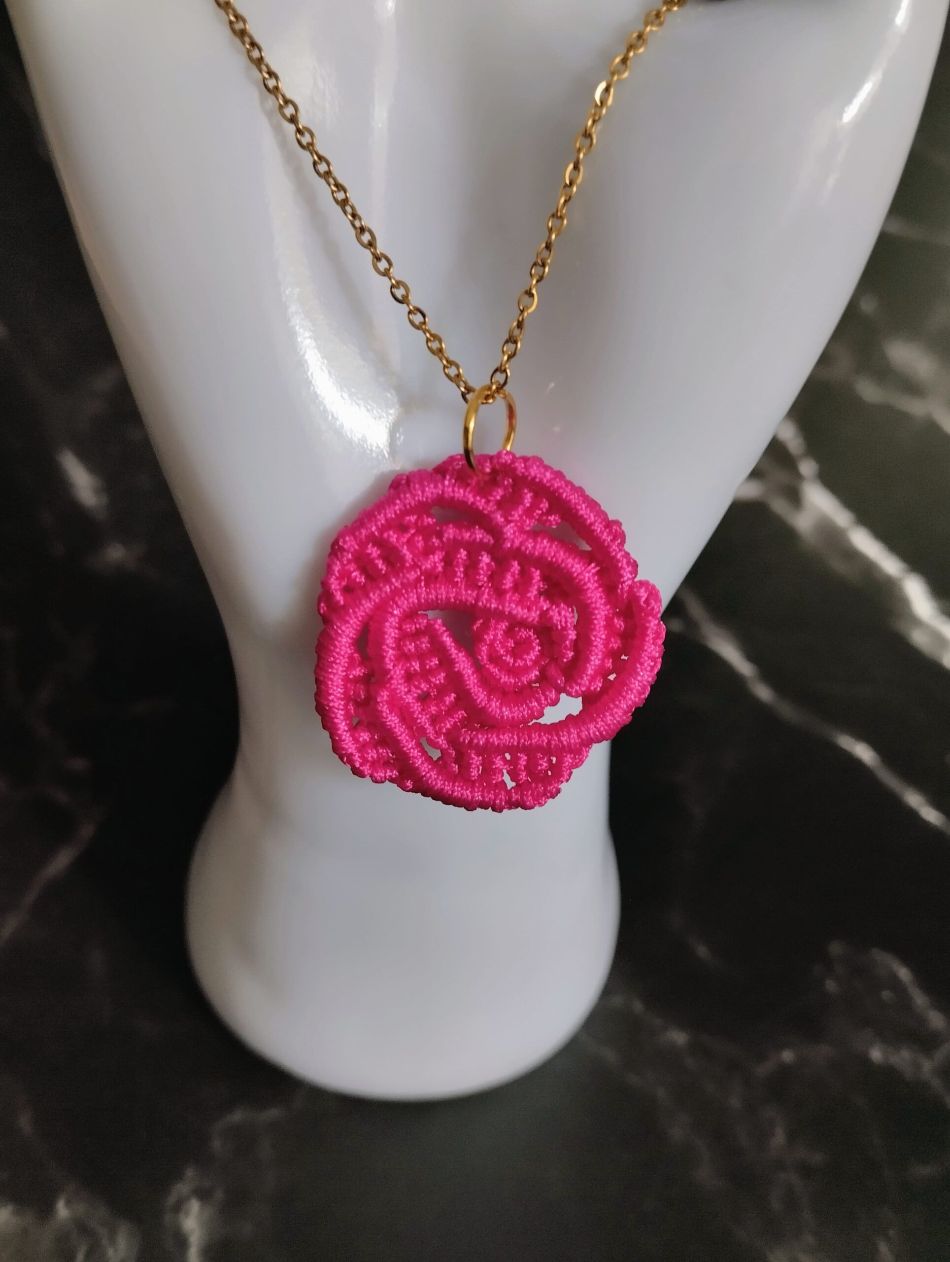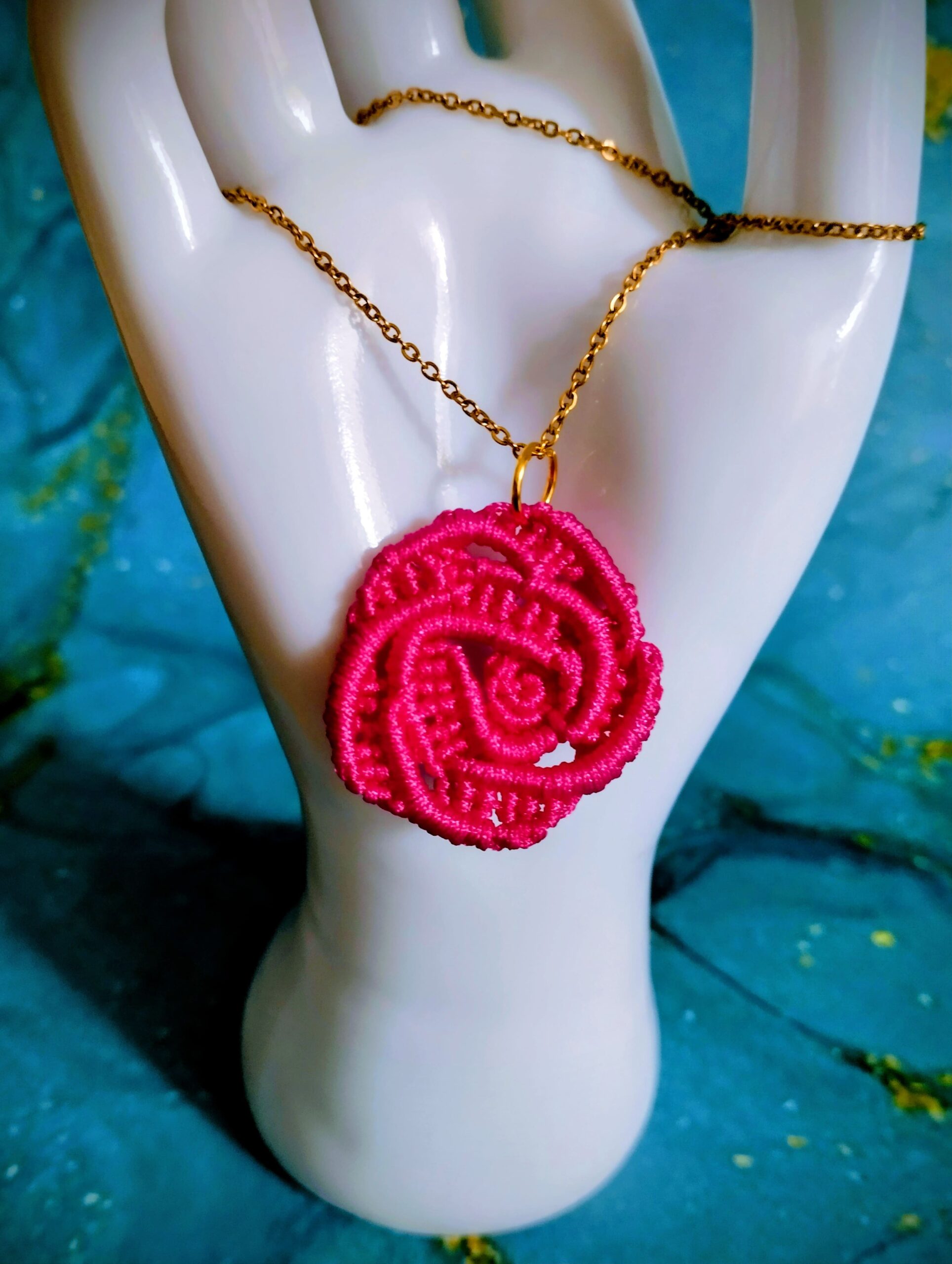 Χειροποίητο κολιέ boho τριαντάφυλλο micro macrame