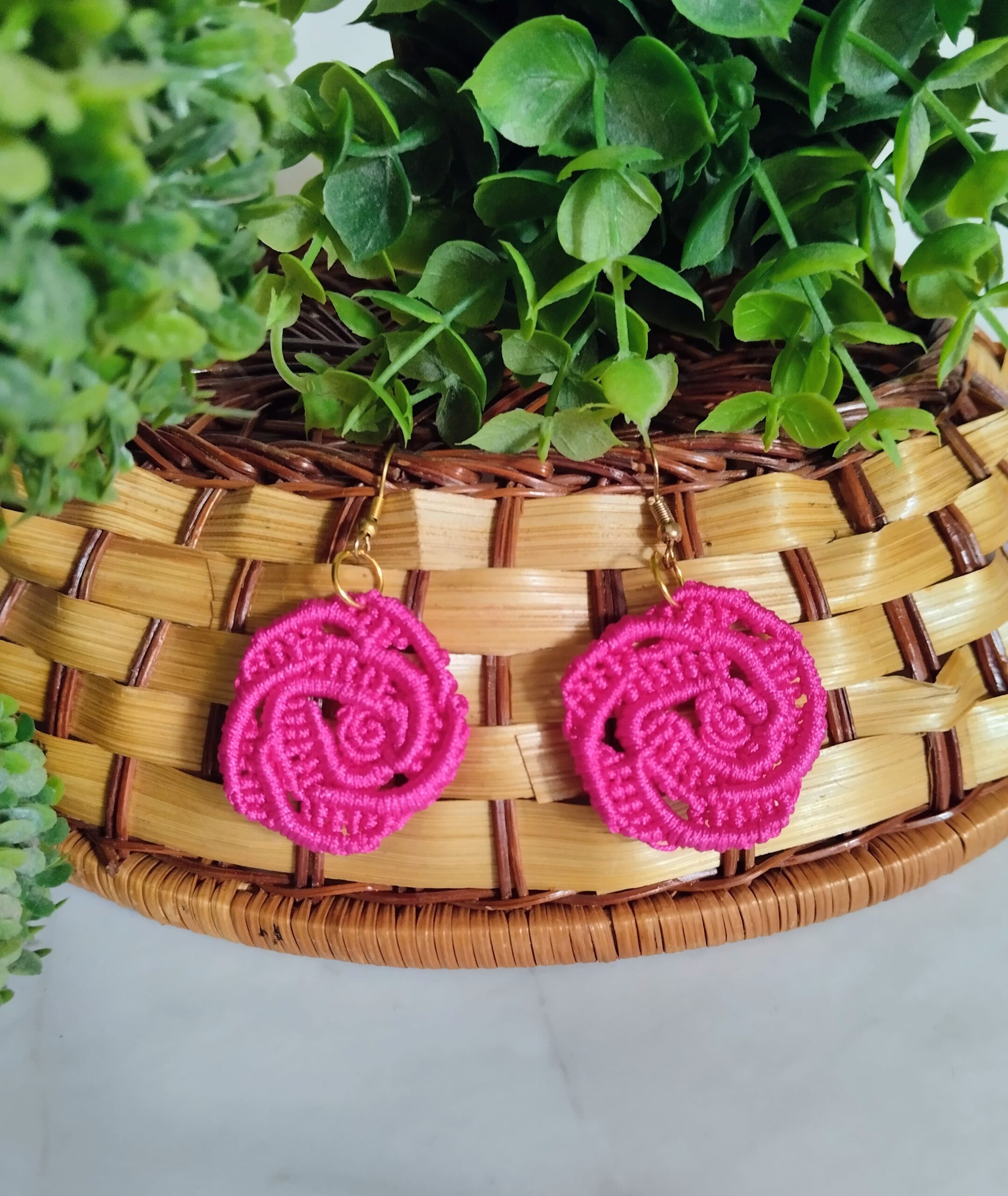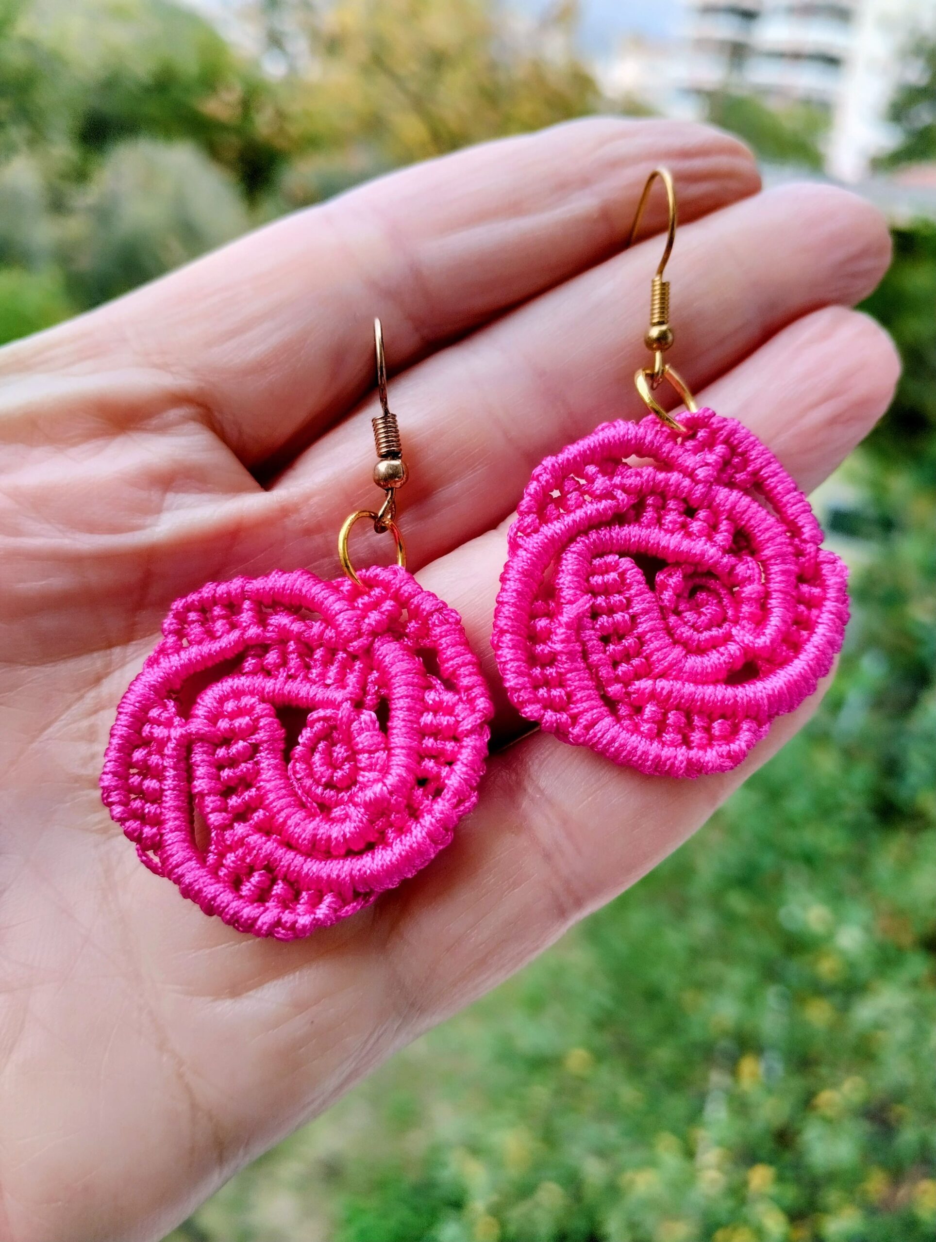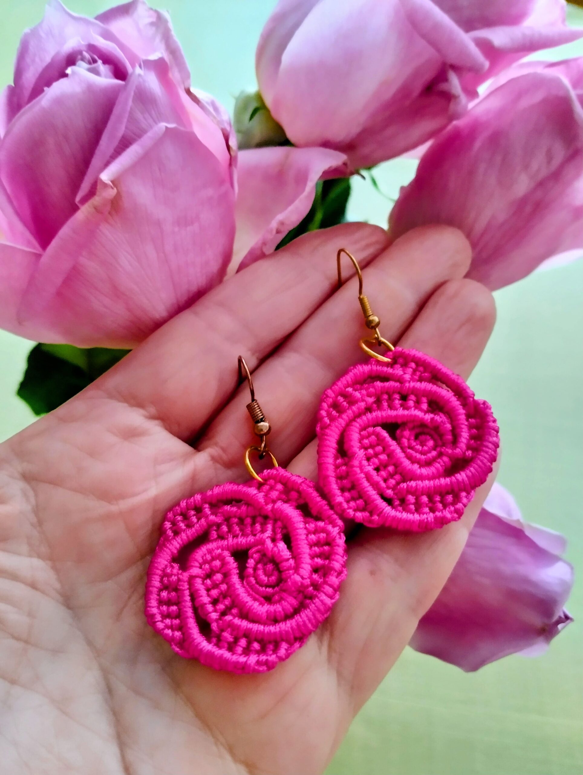 Χειροποίητα σκουλαρίκια boho τριαντάφυλλα micro macrame