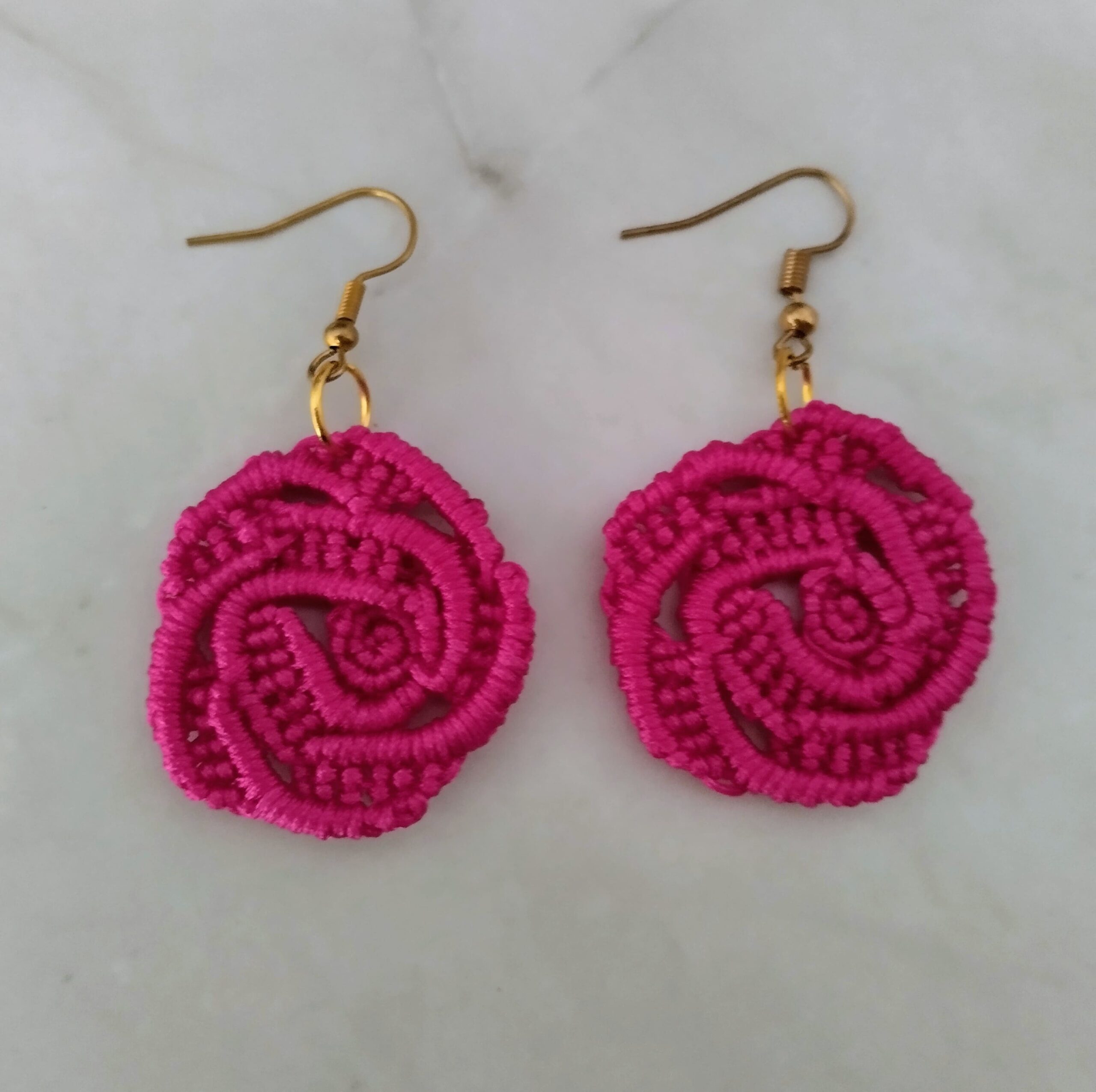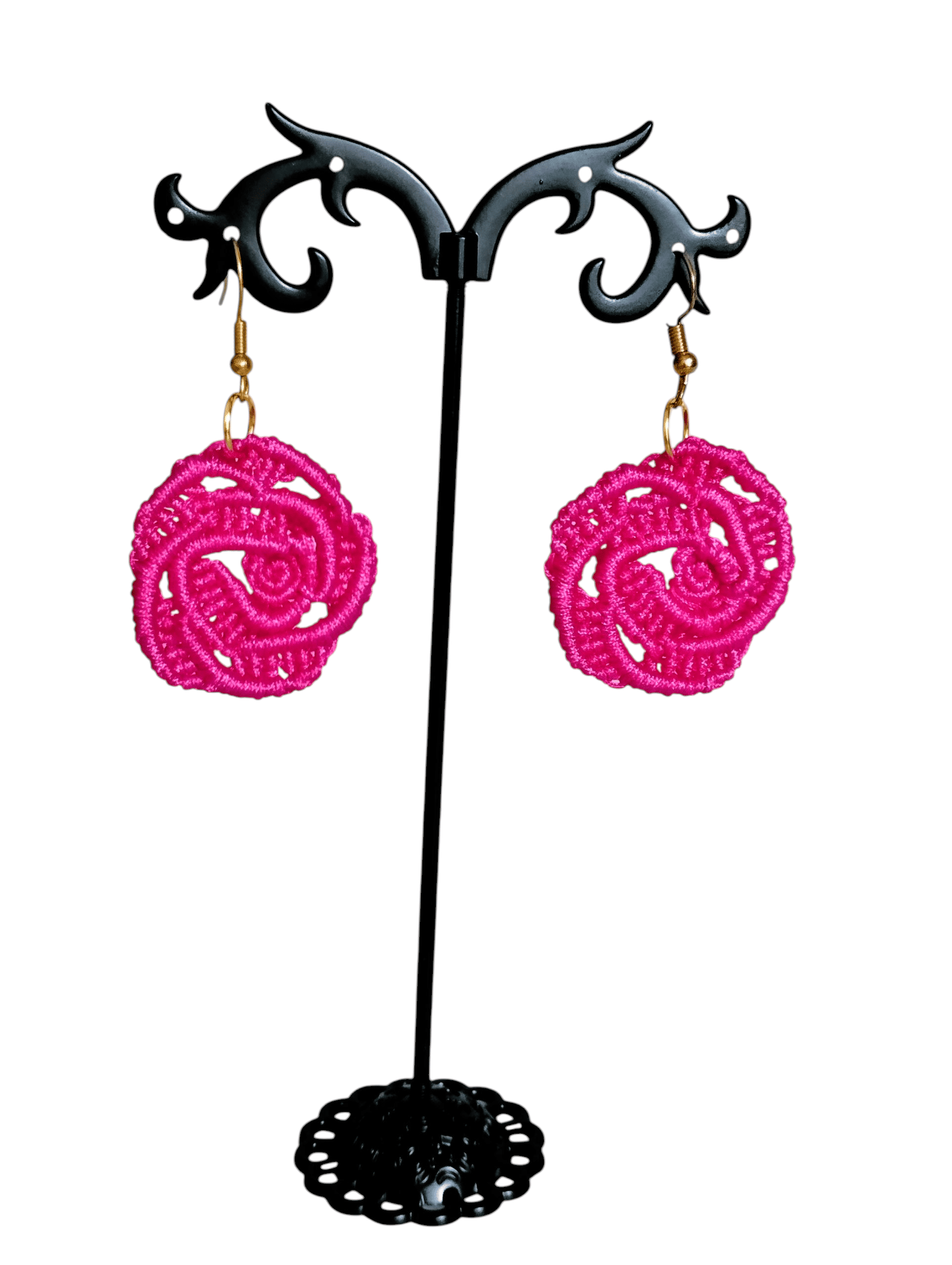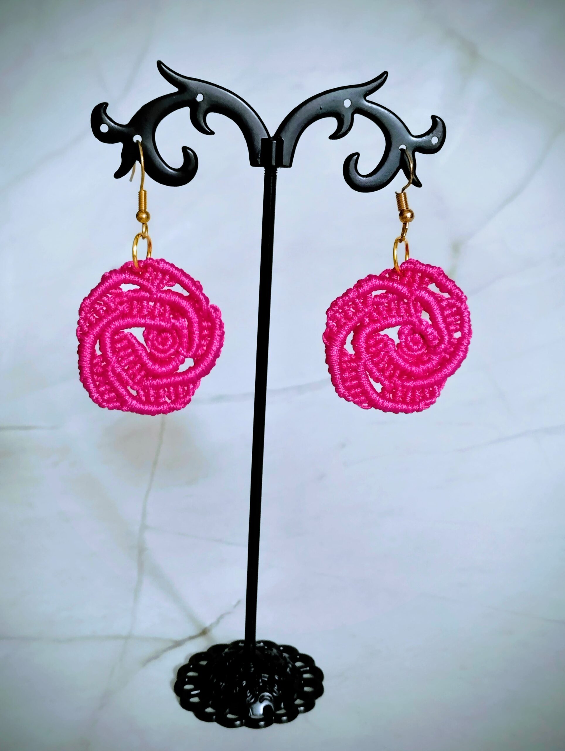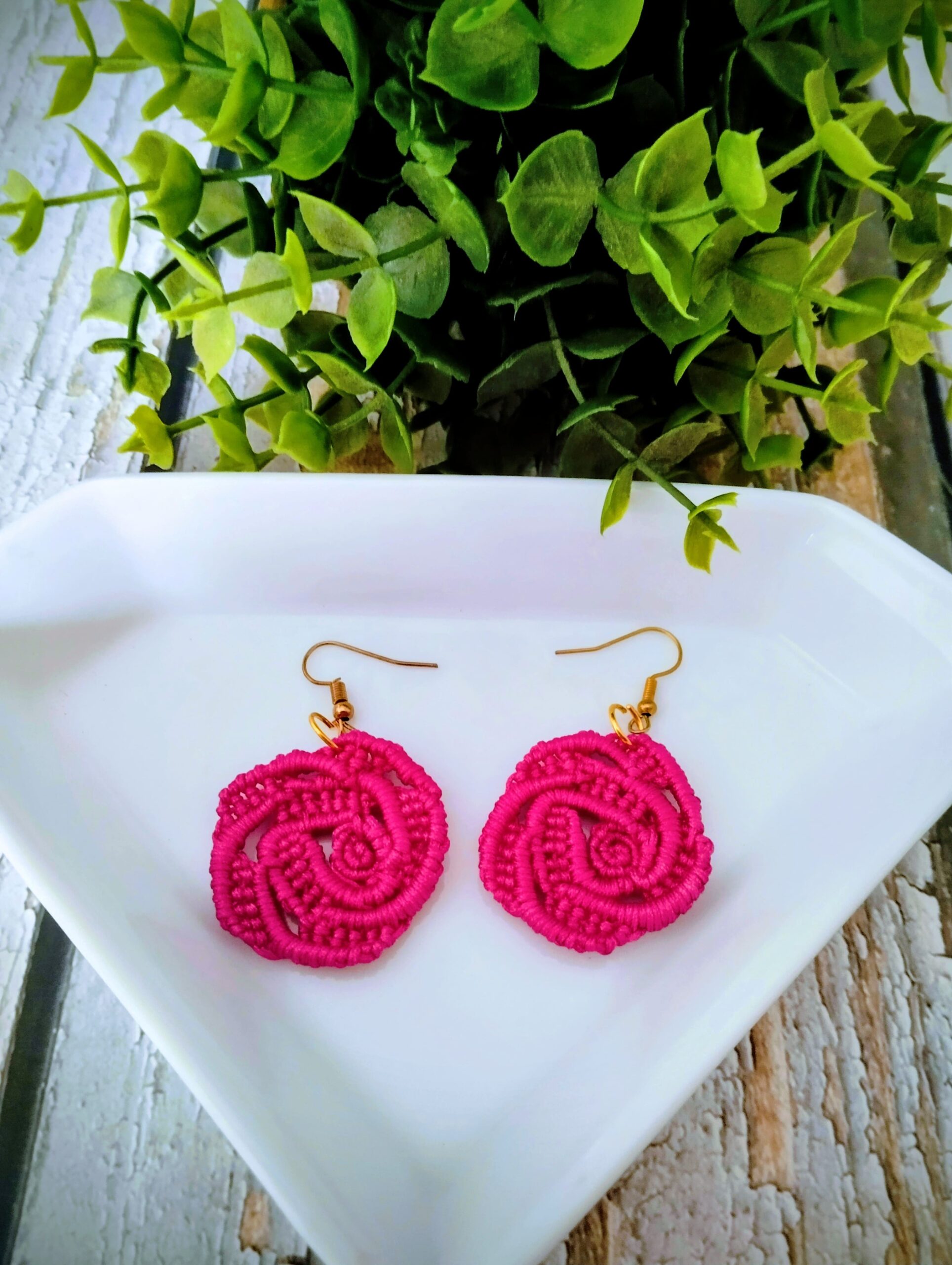 Χειροποίητα σκουλαρίκια boho τριαντάφυλλα micro macrame