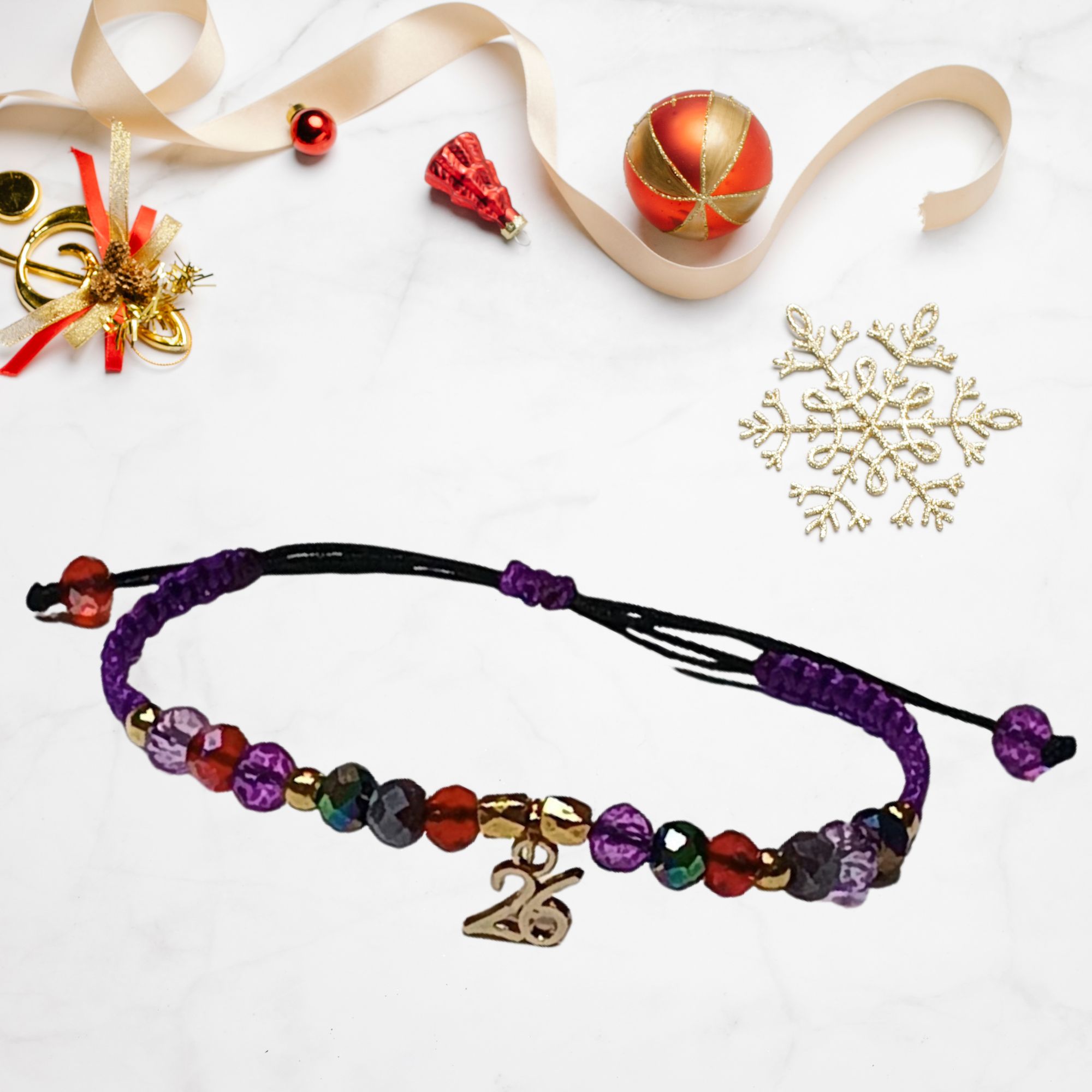 ✨ Μωβ και πολύχρωμο για λάμψη και ενέργεια. Χειροποίητο, ρυθμιζόμενο μέγεθος για να ταιριάζει όμορφα στον καρπό σας. Ένα βραχιολάκι έτοιμο να γίνει το πιο όμορφο γούρι της νέας χρονιάς ✨