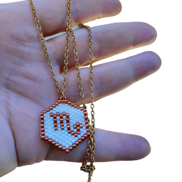 Ατσάλινα Κολιέ με Μενταγιόν Ζώδιο Γεωμετρικό με Χάντρες