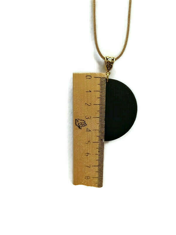 Ξύλινο Κολιέ με Υγρό Γυαλί – Στρογγυλό, Πολύχρωμο, με Κοντό Δερμάτινο Κορδόνι