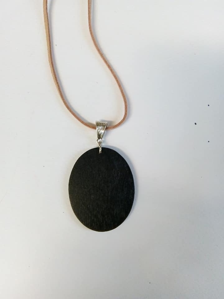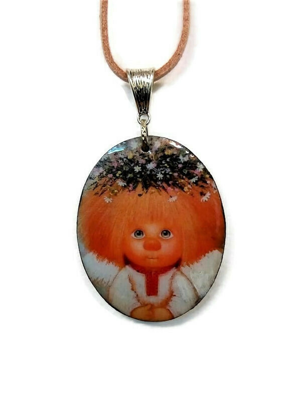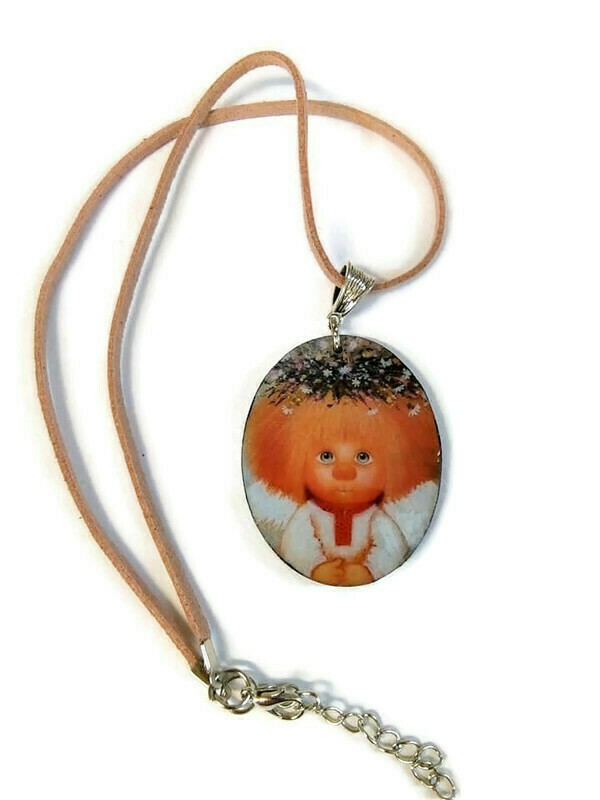 Αυτό το όμορφο ξύλινο κολιέ διαθέτει οβάλ μενταγιόν 5×4 εκ., διακοσμημένο με σχέδιο αγγελάκι σε ζωηρές, πολύχρωμες αποχρώσεις. Το μενταγιόν είναι καλυμμένο με υγρό γυαλί, προσδίδοντας μια λαμπερή και εντυπωσιακή εμφάνιση. Το κολιέ κρέμεται από κοντό δερμάτινο κορδόνι, προσφέροντας μια ξεχωριστή και διακριτική επιλογή, ιδανική για να συμπληρώσει το στυλ σου σε κάθε εμφάνιση.
